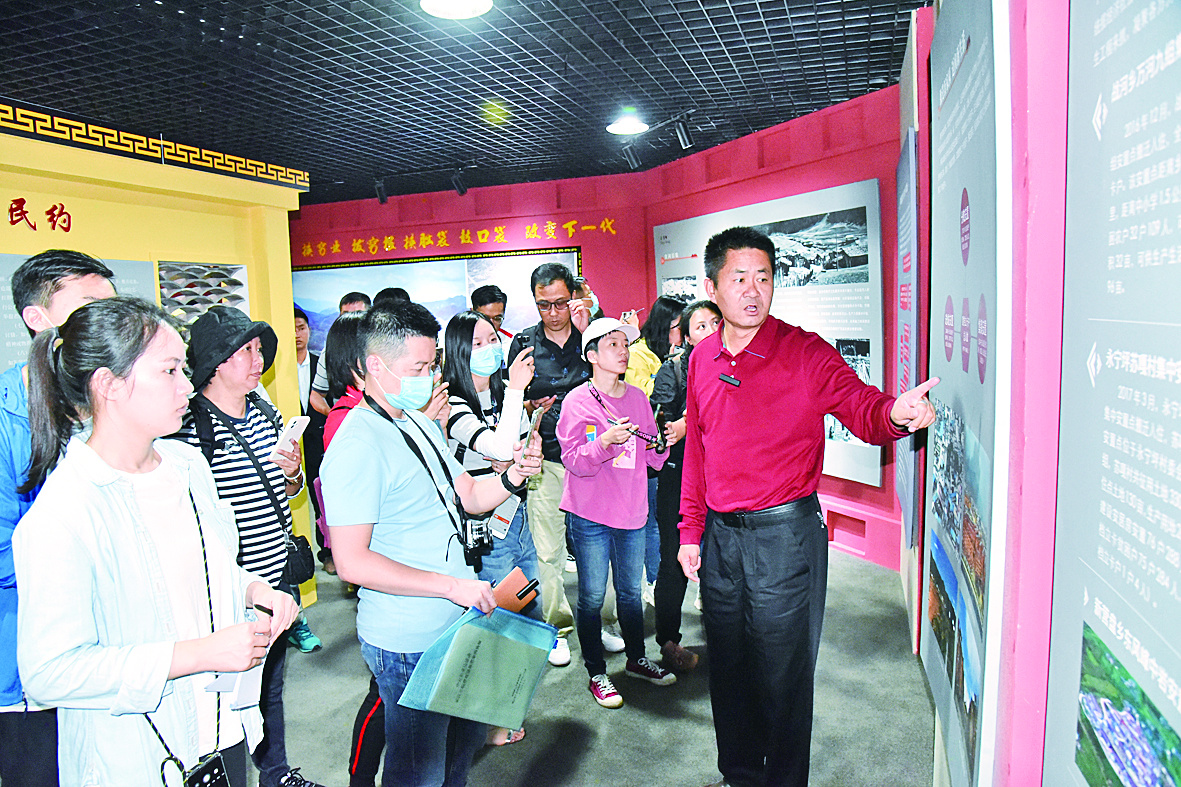 9月11日,采访团在宁蒗县易地扶贫搬迁三期幸福家园“村史馆”采访