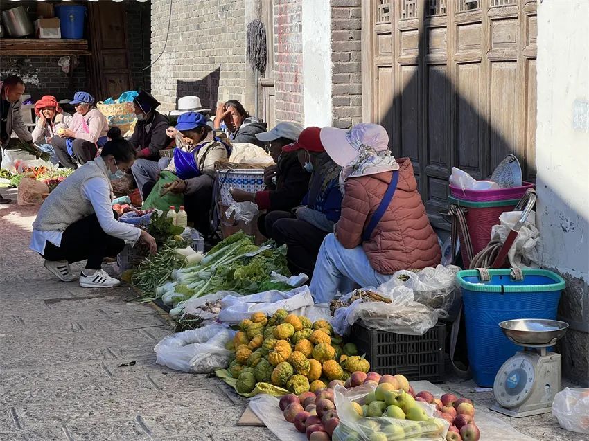 冬天在赶往这座滇西北小城的时候,脚步许是轻柔又缓慢的,以至于暖阳不曾在每一个冬日黎明撤退,就算丝丝渗透进周身的冷空气也不得不在冬日暖阳的照耀下,对人们礼让三分。笼络了太阳的城市,给予了万物喘息的机会,部分蔬菜瓜果顶着寒冷生长,在阳光的加持下,绿的碧色逼人,红的耀目璀璨,鲜明的色彩抹去了原本属于冬日的肃杀和孤寂。