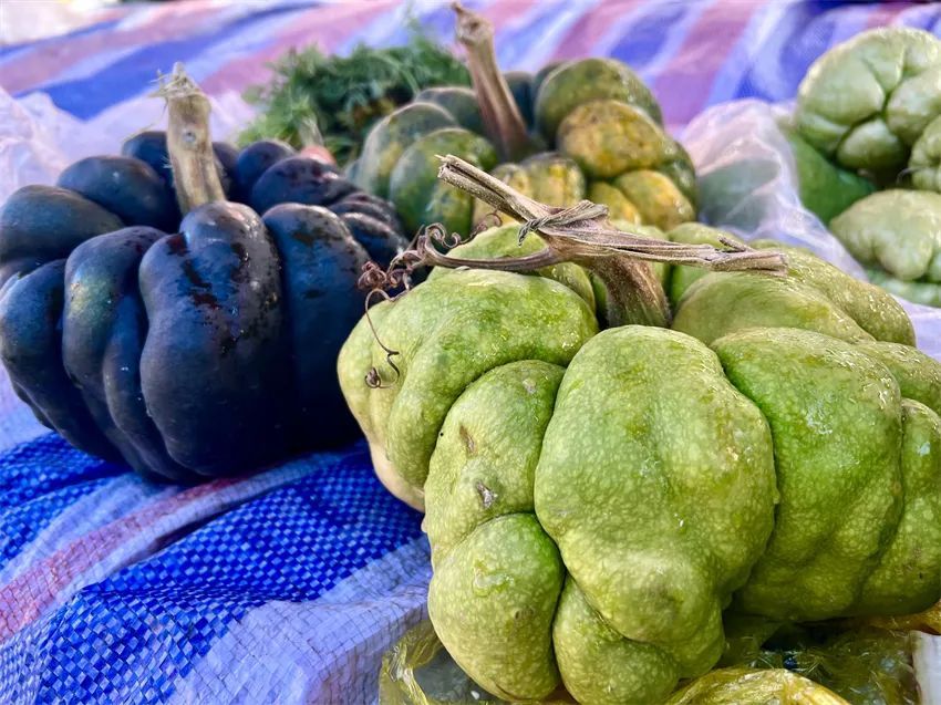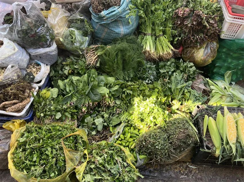 而隐藏在最深巷弄的摊位,甚至还摆放着似乎春天才能尝鲜的野菜。只不过不同于春天的柔嫩纤细,冬天的野菜无论在体量上还是口感上都要更加生猛粗糙一些。