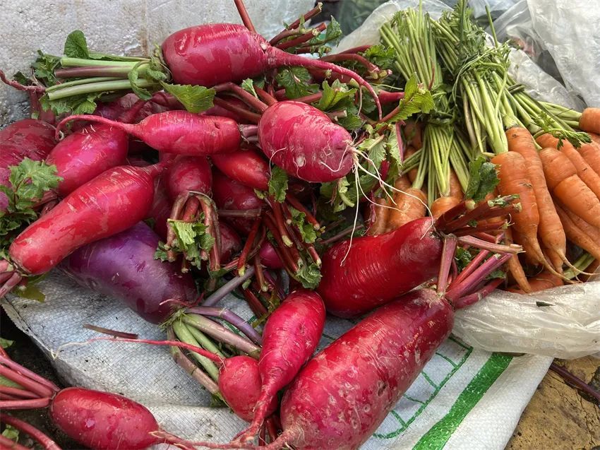 而丽江的菜市场是没有北方那般严阵以待的肃穆氛围的。它给了人们不紧不慢的底气,就算没有其他季节那样花样百出的奇珍异草,冬季的菜市场,依然释放着不可忽视的生机和活力。