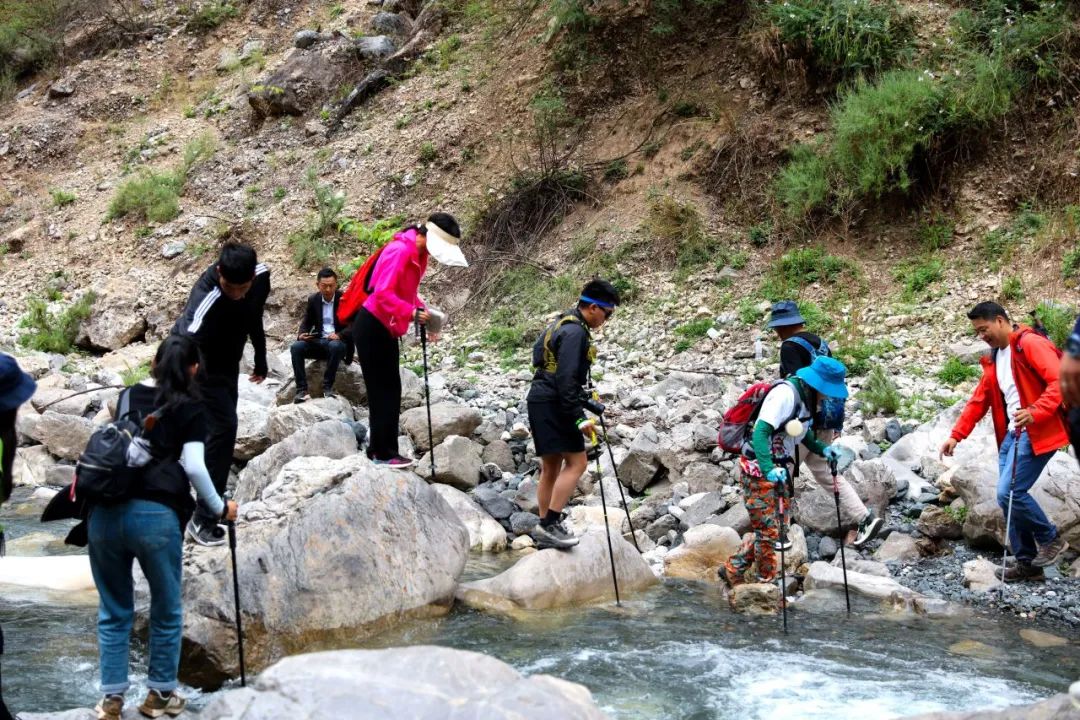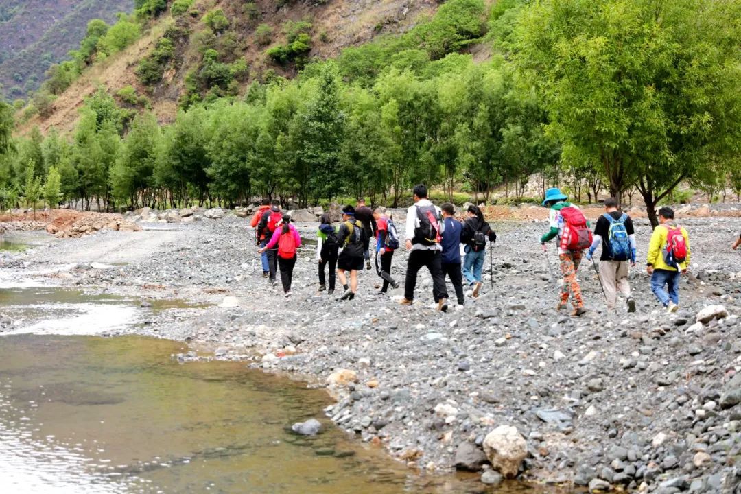 此次徒步活动从海拔约2785米的甲子村青松一组(沙坝)出发,沿白水河河畔徒步至海拔约1380米的大东乡白浪花上游,穿越1000多米的高差,是一次极致“冰与火”的神奇体验。此行线路全长9.5公里,徒步时长2个多小时。