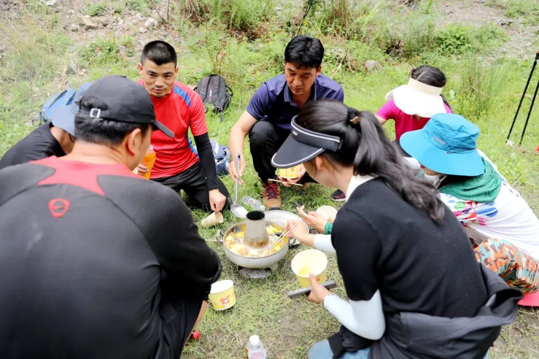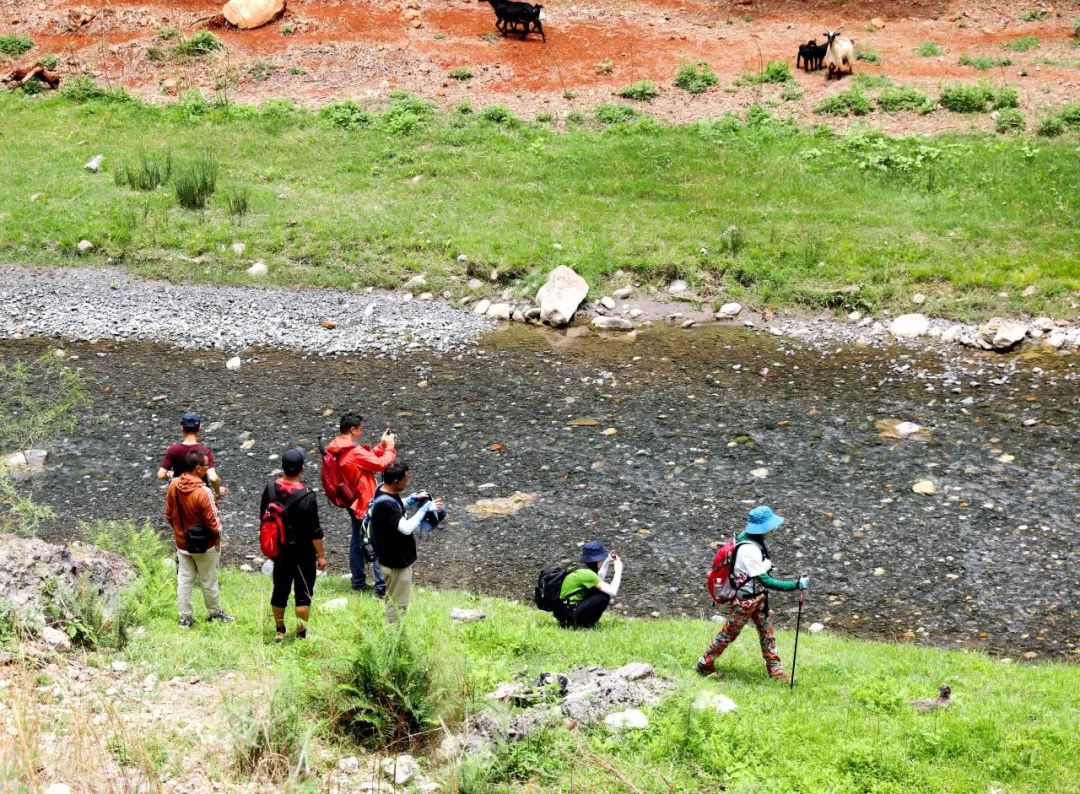 经过一个多小时的徒步,我们抵达大东甘子树当。这里有水草丰茂,河水粼粼,我们稍作休息,在此品户外美食,欣赏周围的风景,享受着大自然的馈赠。