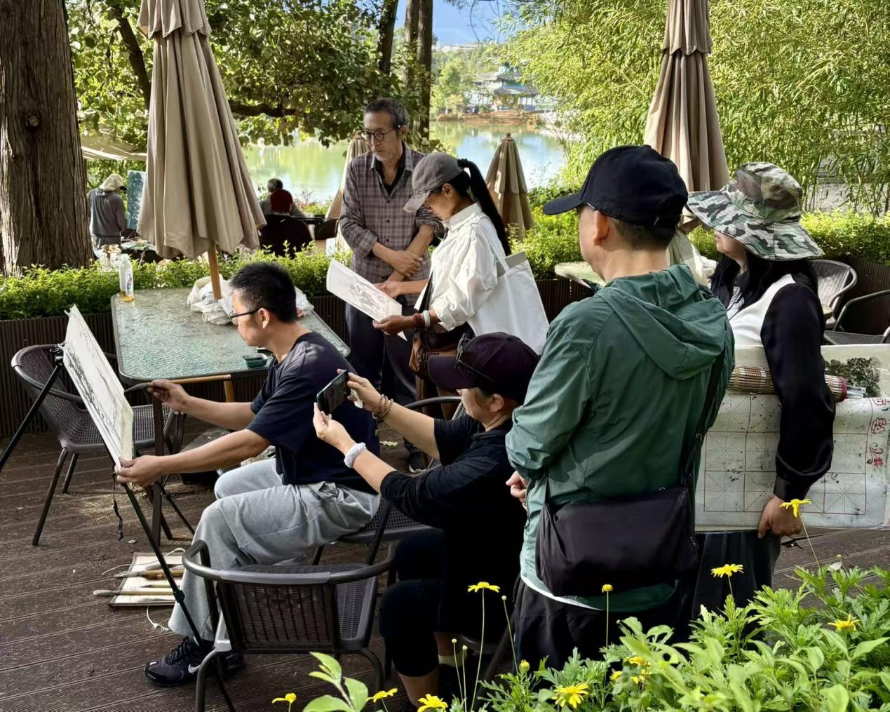 在为期一周的活动中,王雪峰、孙春龙、聂松、高堃四位国内知名国画家带领来自滇西多地州及丽江四县一区的30名美术从业者及爱好者,深入丽江古城、玉龙雪山蓝月谷、白沙玉湖村、黑龙潭,开展了一场理论讲解与实地写生深度融合的专业指导。学员们纷纷表示,此次与国画名家同行研学、面对面交流受教的宝贵经历,不仅有效提升了自身写生创作技艺,更让大家在沉浸式体验中深化了对丽江自然之秀、人文之韵的理解与感悟,为后续用艺术笔触展现丽江魅力、推动民族文化传播奠定了坚实基础。