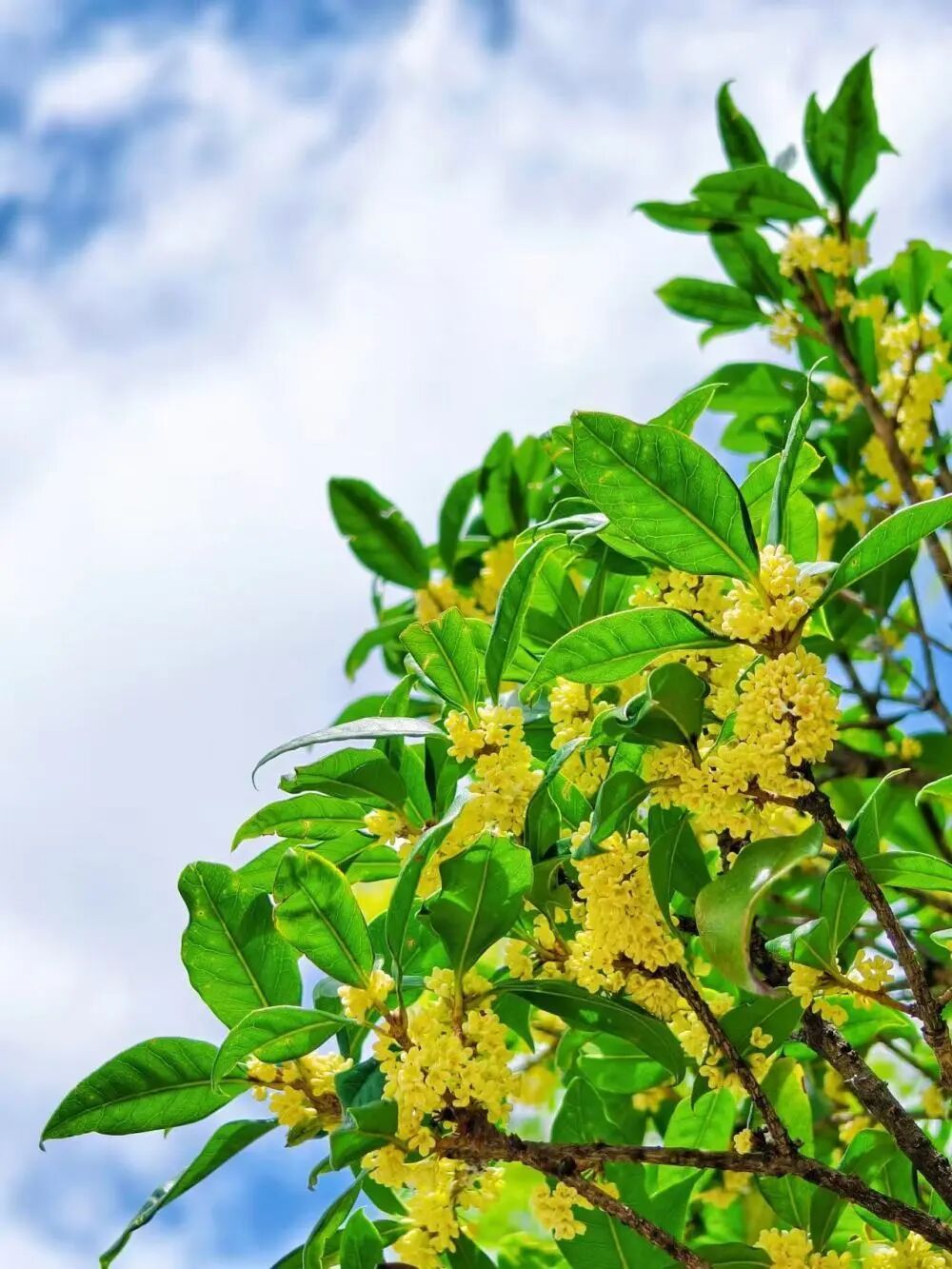 于是你便开始寻它。仰起头,在油绿发亮的叶子底下,一簇簇、一丛丛,那些米粒般大小的黄花,正羞怯地藏于枝叶当中。它们是这样的小,小得几乎算不得是一朵花,倒像是哪个巧手的妇人,用最细的绣花针,蘸了淡淡的金粉,在墨绿的缎子上,不经意间点出的斑点。它们挤作一团,热热闹闹的,却又静悄悄的,仿佛知道自己生得不起眼,便索性不与桃李争春,不与荷菊争秋,只将这满腹的香气,化作无声的言语,诉说着一个关于秋天的故事。