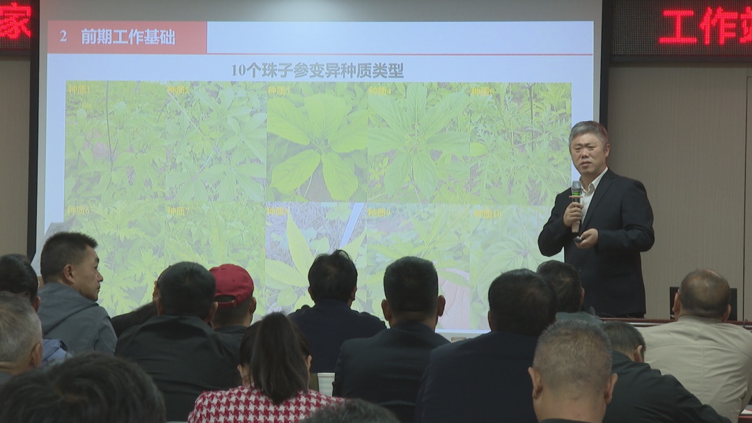 专家正在进行珠子参介绍。记者 张丽瑶 摄
