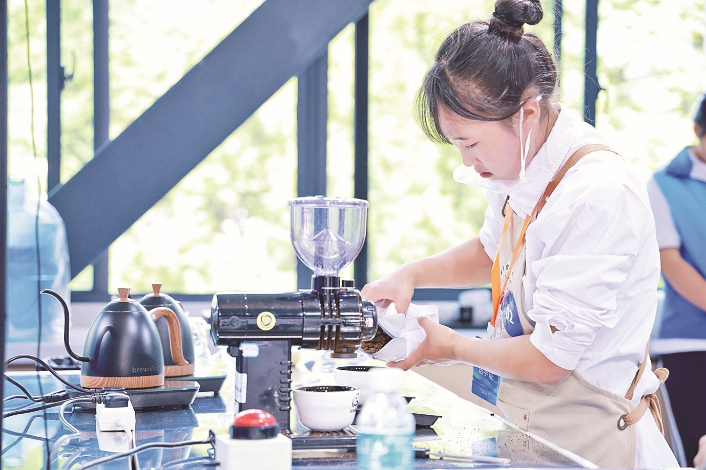 赛场上,选手沉着应战,发挥稳定。参加咖啡烘焙赛项的选手精准把控咖啡豆的烘焙温度及时间;导游服务赛项选手表达流畅,生动诠释地域文化魅力;中餐烹饪赛项选手通过默契的团队配合,展现了扎实的专业功底与职业素养。