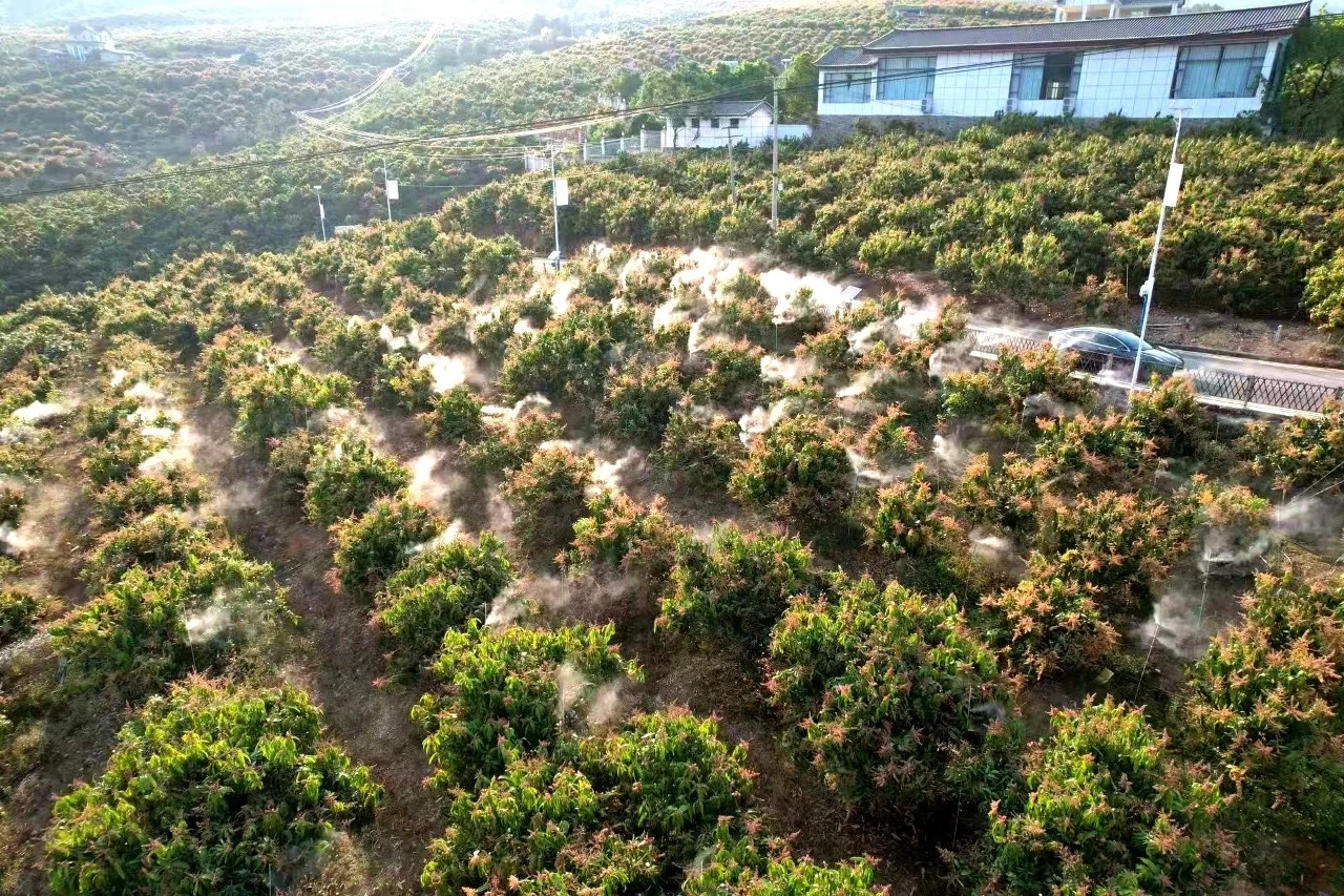 仲秋时节,荣将镇龙头村果子山一片郁郁葱葱。与往年不同:一排排精准滴灌头正默默为果树输送水肥,室内电子屏上,土壤湿度、养分含量、空气温湿度等数据实时跳动——昔日果农们“凭经验、靠人力”的忙碌场景,正被一幕幕静悄悄的“数字管家”精准管护所替代。