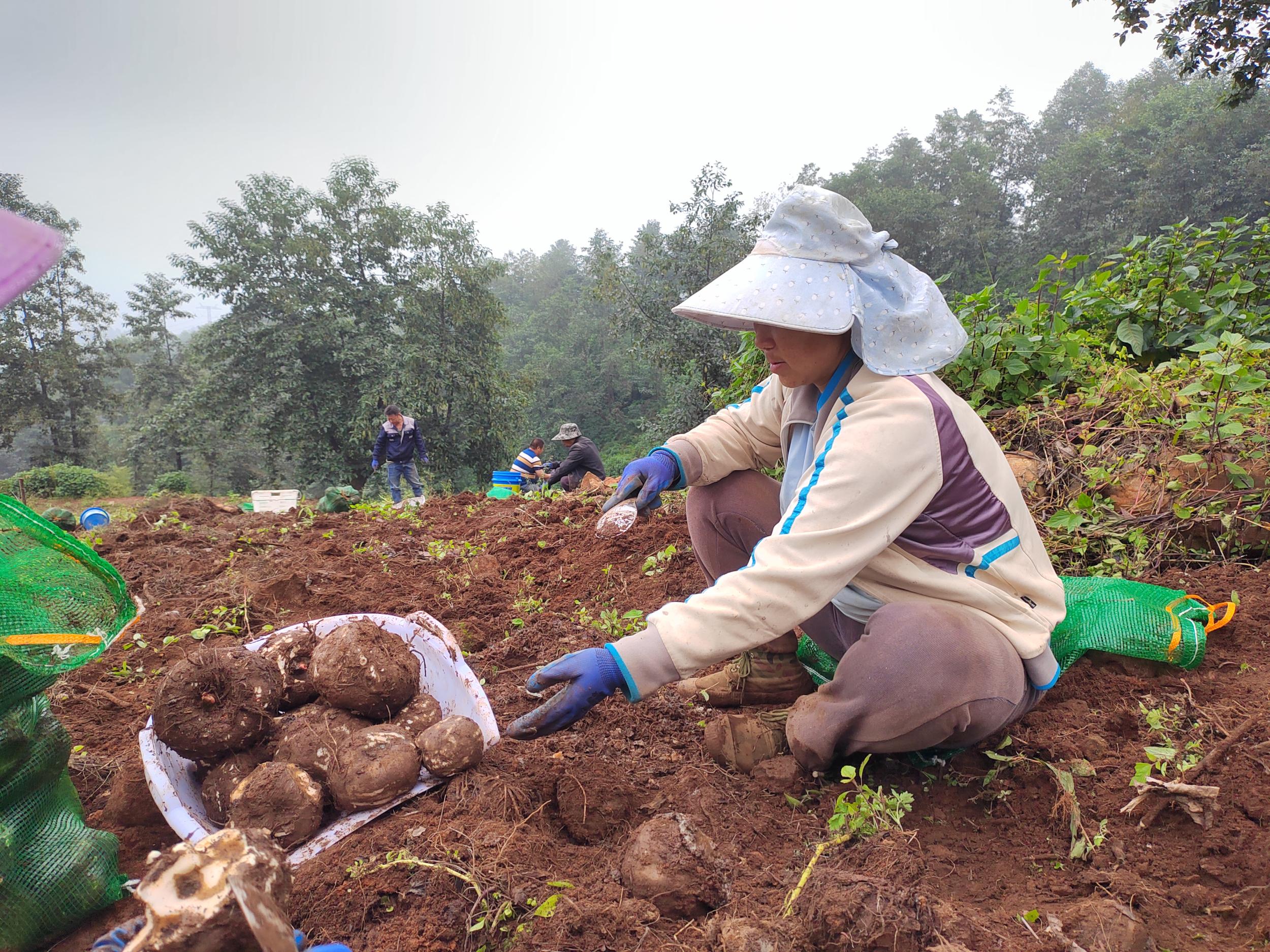 走进宏地村魔芋种植基地,只见魔芋错落生长于林木之间,“林芋共生”的模式既为魔芋提供了理想的荫蔽环境,也让原本静默的山林焕发出新的经济活力。