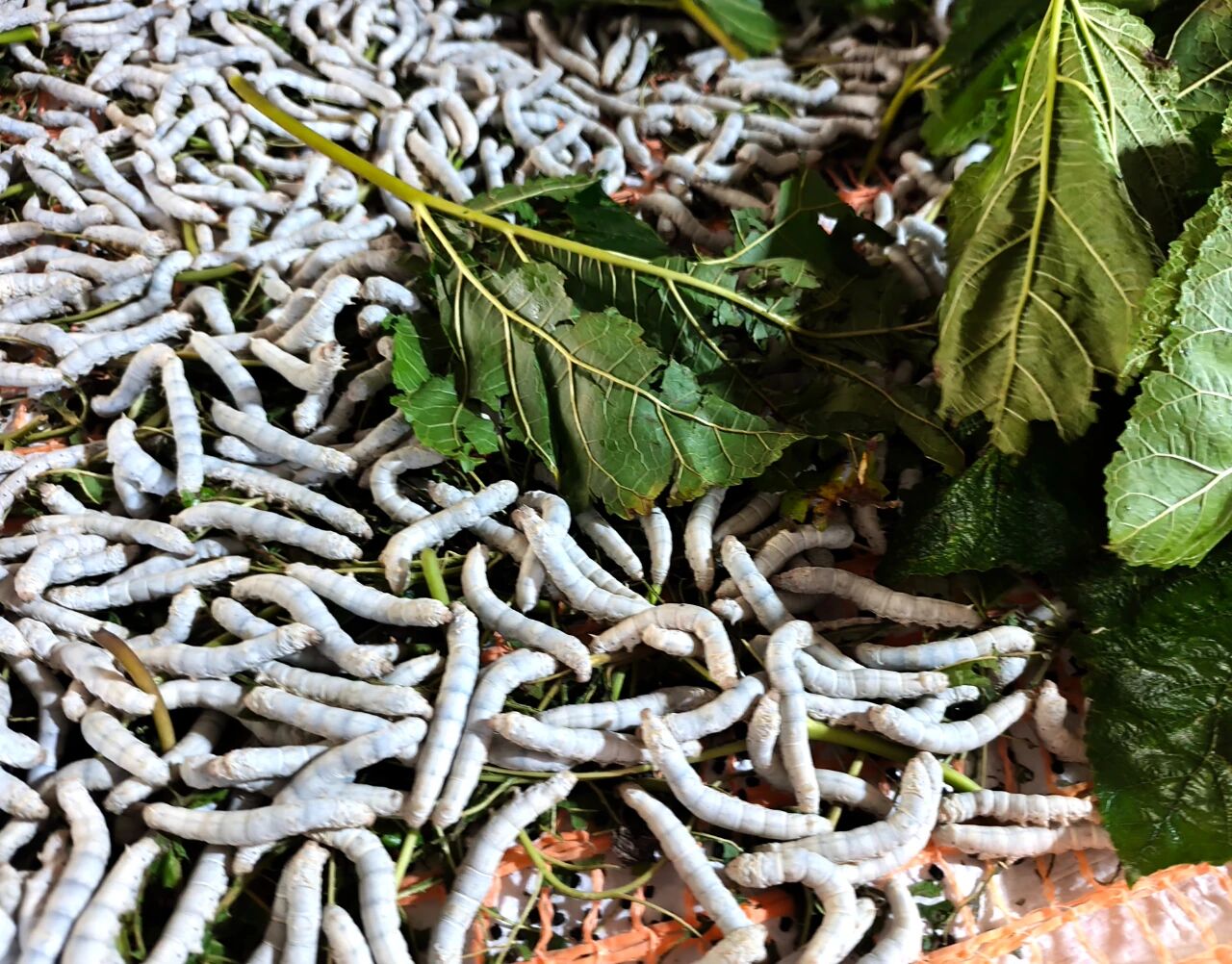 当下,南阳村正沉浸在全年的最后一轮丰收忙碌中。蚕房内,一排排蚕架整齐林立,即将吐丝的熟蚕体态丰盈、通体透亮。村民们熟练地穿梭其间,添叶、清理、观察长势。繁忙而有序的景象,勾勒出南阳村深秋时节最动人的画卷。