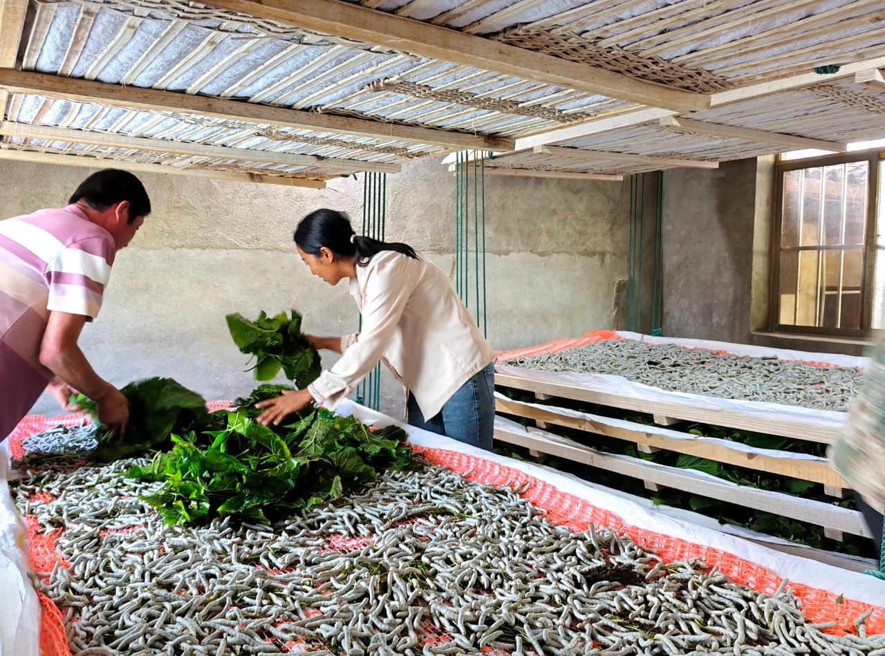 南阳村8组蚕农冯发学是村里的养殖能手,其养殖规模已从最初的一两张蚕种,发展到如今一季便能养殖四五张,每季收入超万元。“现在一年能养六季,年收入稳定在五六万元。我们这里的气候和海拔特别适合养蚕,而且蚕种根本不愁卖。”冯发学对如今的红火日子倍感欣慰。
