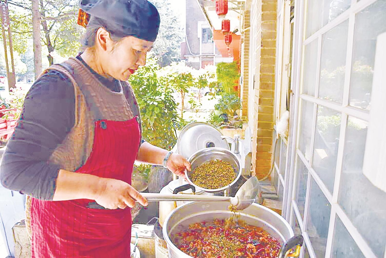 10月21日,和学清在制作“江边辣”。