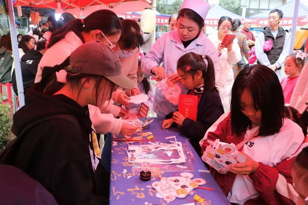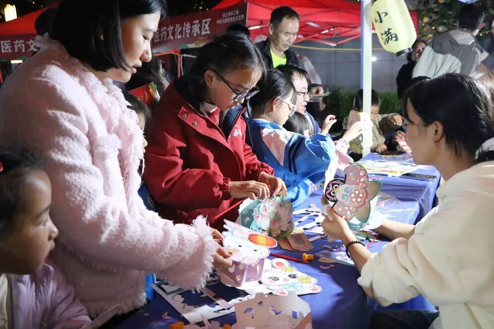 此外,巧手创意区同样热闹非凡。灯笼制作区内,孩子们在家长的陪伴下,认真细致地制作手工灯笼。工作人员介绍,在提灯笼的过程中,刻意屈伸手指能刺激手部井穴,达到保健效果。制作完成后,市民们纷纷带着自己的作品来到古风立牌打卡处拍照留念,定格美好瞬间。中草药手绘纸扇区,参与者仔细观察药材的形态与颜色,将自己的创意与对中草药的理解融入画作,精心绘制专属纸扇。这一过程不仅提升了大家的审美能力,更让参与者加深了对中草药的认识与了解。