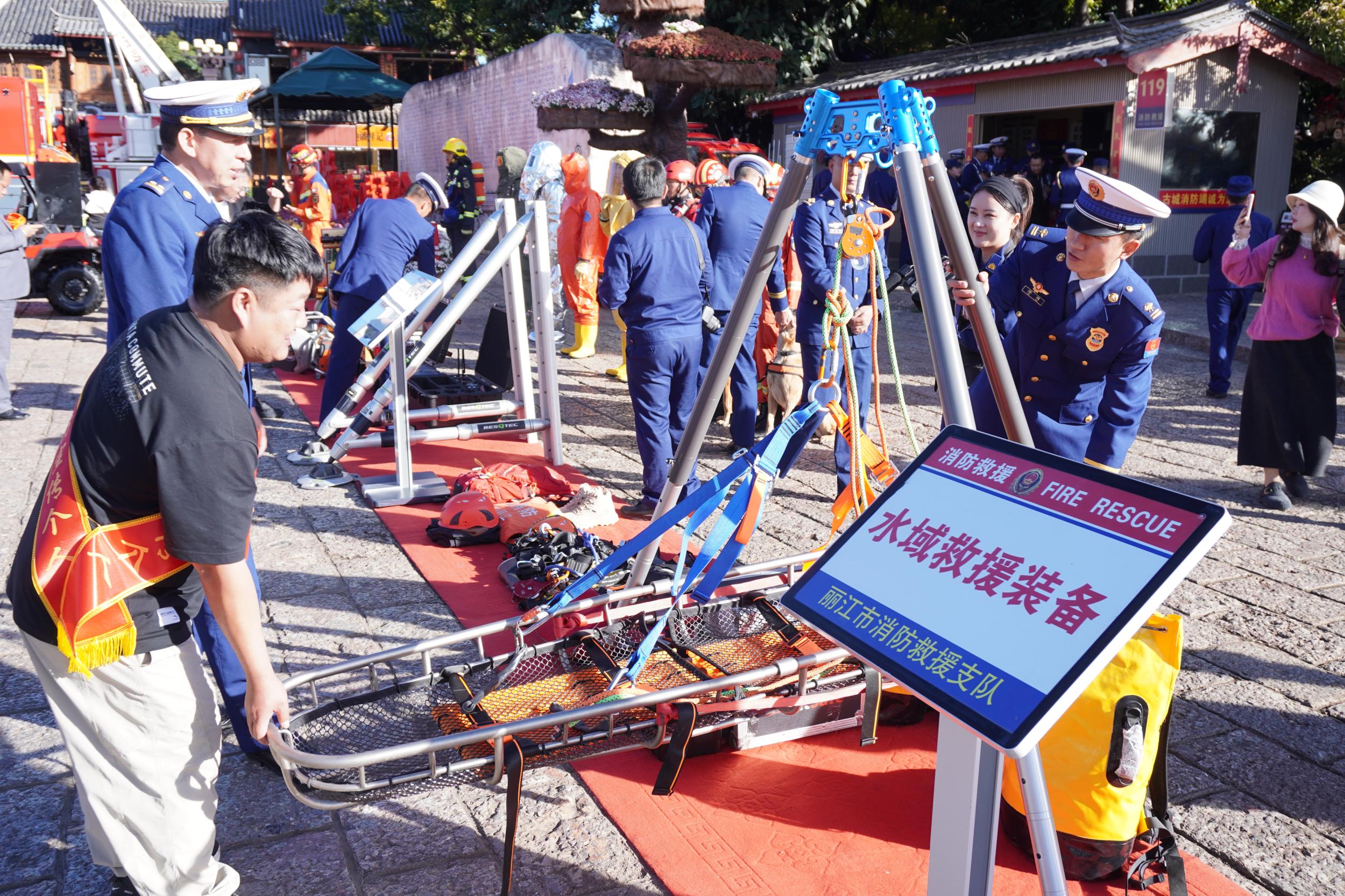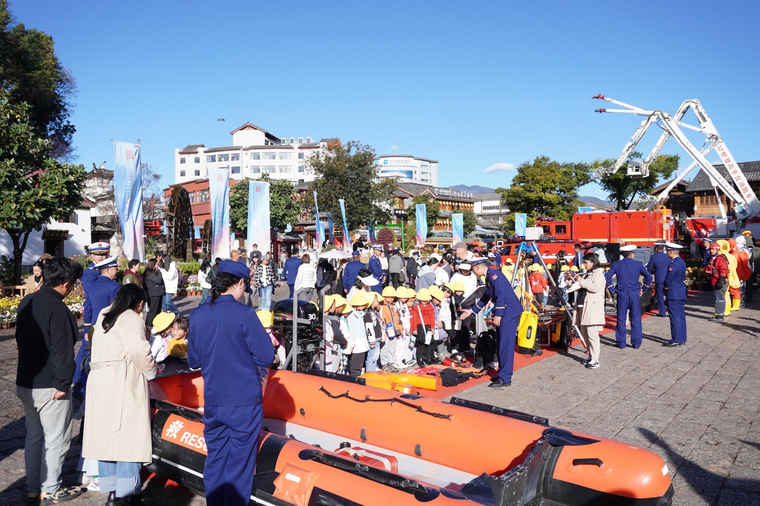 活动打破传统宣传模式,推出多项沉浸式体验环节。现场设置消防装备展示区,消防救援车辆和水域救援、山岳救援、地震救援、灭火救援等专业装备零距离面向公众开放。消防员现场讲解并演示器材使用方法,指导参与者亲身体验,掌握应急技能。此外,VR游戏逃生体验区通过虚拟现实技术,模拟火灾、地震等灾害场景,让市民在互动中学习科学逃生与自救技巧。现场还设有互动体验区,参与消防知识问答、趣味游戏即有机会赢取精美礼品,在轻松氛围中巩固安全常识。消防宣传月期间,“蓝朋友带你游古城”消防知识打卡活动在丽江古城景区同步开展,参与者领取活动专属打卡地图后,根据地图标注的点位前往参与消防知识答题,集齐点位贴纸可兑换“消防神秘礼物”,让群众在游览古城的同时学习火灾预防、逃生自救等实用知识。