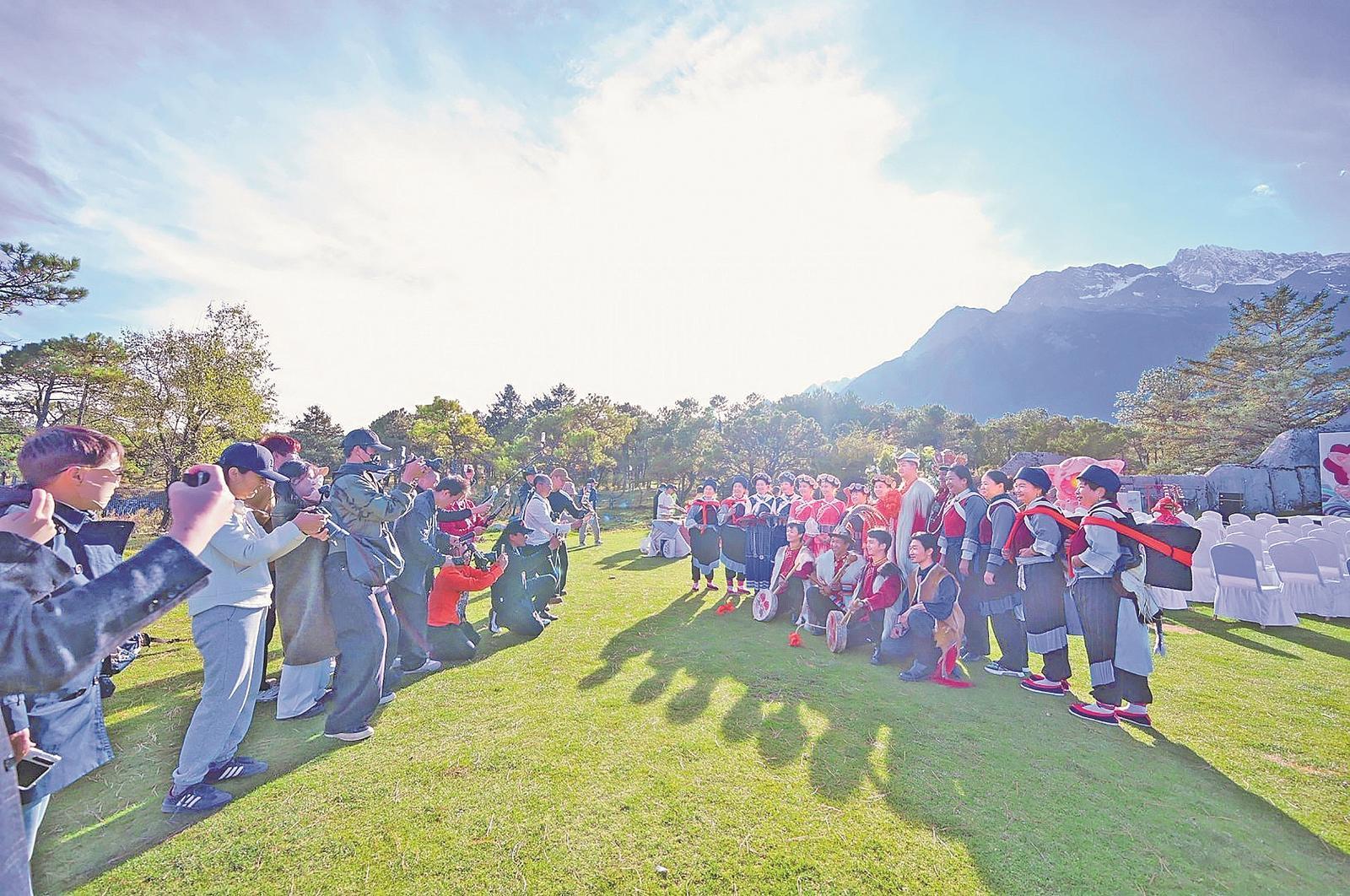 11月9日,“情定云南·舍不得的丽江”丽江旅行婚礼首选目的地推介活动在玉龙雪山景区举行。活动现场,纳西古乐悠扬旋律萦绕耳畔,丽江向海内外情侣发出盛情邀请:“来丽江结婚吧!”以天地为证、雪山为媒,让古城烟火与旷野清风,为新人留下难忘的记忆。