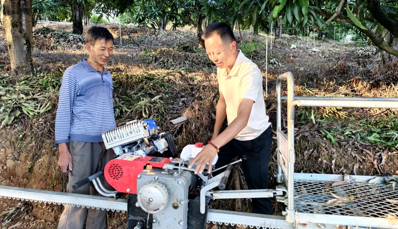 但谢方华的愿景,远不止于“卖设备”。“我要让更多乡亲从繁重的肩挑背扛中解放出来。”带着这份初心,他开创性地推出“共享小火车”服务模式。公司与12个村集体合作,在芒果园、柑橘园中铺设轨道10万余米,覆盖2万多亩果园,让便捷运输成为果农的“共享基建”。