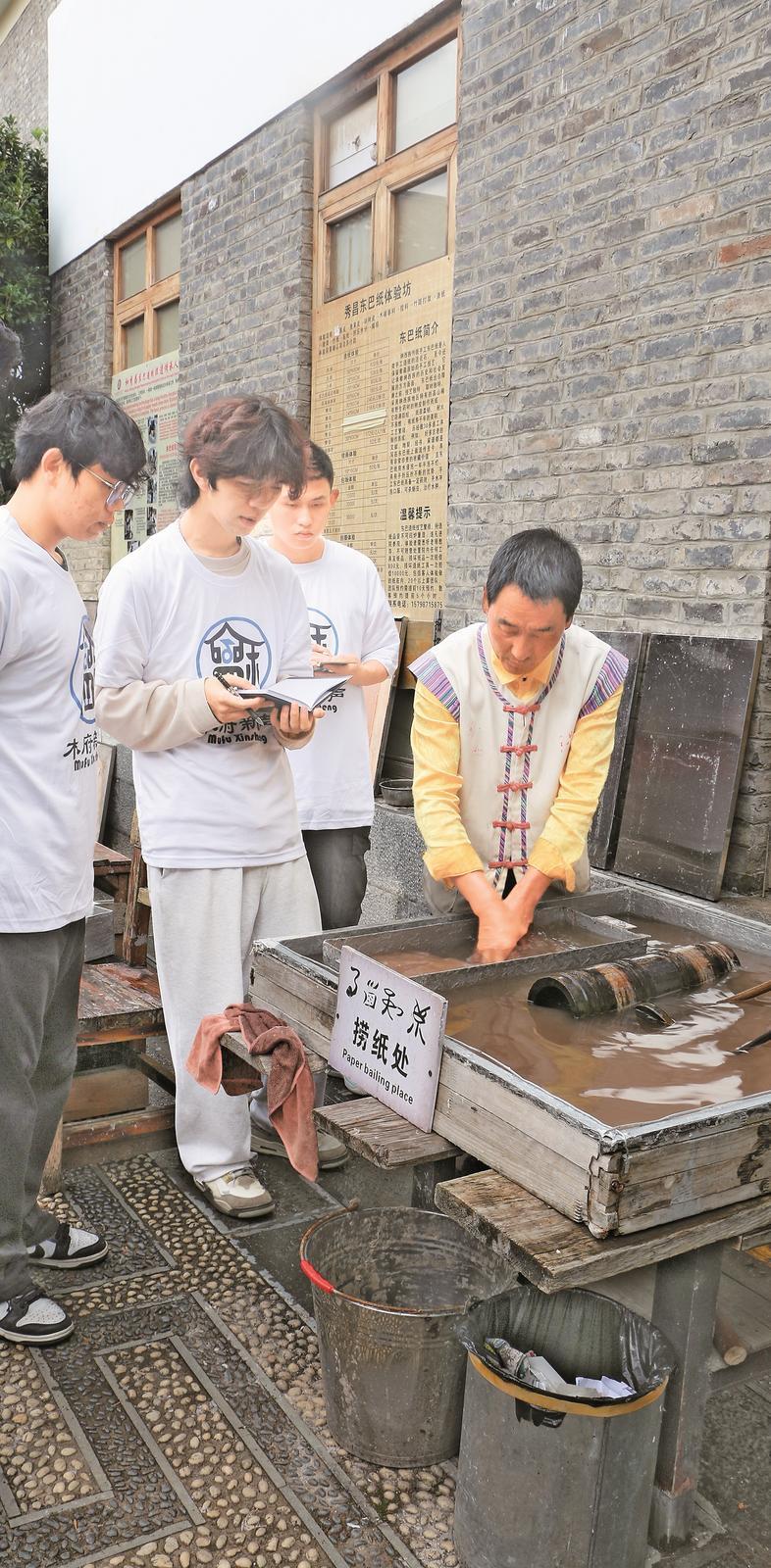 图为“丽江木府新声”项目团队在调研纳西族东巴纸制作技艺。(通讯员 杨江晨)