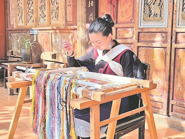 午后的白沙锦绣艺术院阳光斑驳,身着纳西族传统服饰的绣师端坐其间,手中的针线穿梭于布帛。在这里,杨贵芬从一名家庭主妇成长为绣师,一绣便是12年。“以前,我在家中照看孩子、照顾老人,几乎没有收入来源。如今,我成为一名绣师,每月收入4000多元。”杨贵芬满脸喜悦地说。