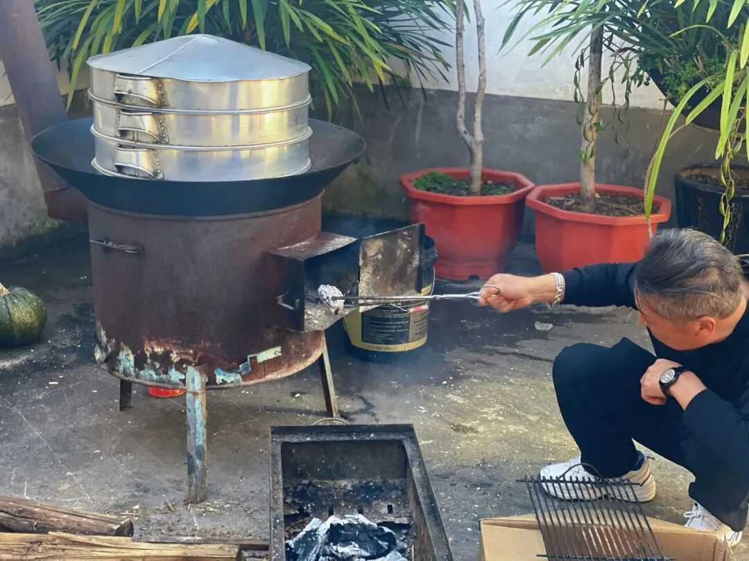 柴火灶稳稳架在院中,主人家开始了一天的忙碌。记者 李耀瑭 摄