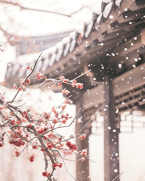 若逢一场晚雪,丽江的冬至更添几分厚重。雪花簌簌落下,轻轻覆在古城檐角,抚过梅枝花苞,大地瞬间被一片素白笼罩。恍惚间,便懂得了“昔去雪如花,今来花似雪”的深长意境——岁岁冬至的雪,落了又融,融了又落,时光流转,唯有这份雪夜中的静谧和惬意,与心底的牵挂始终未变。
