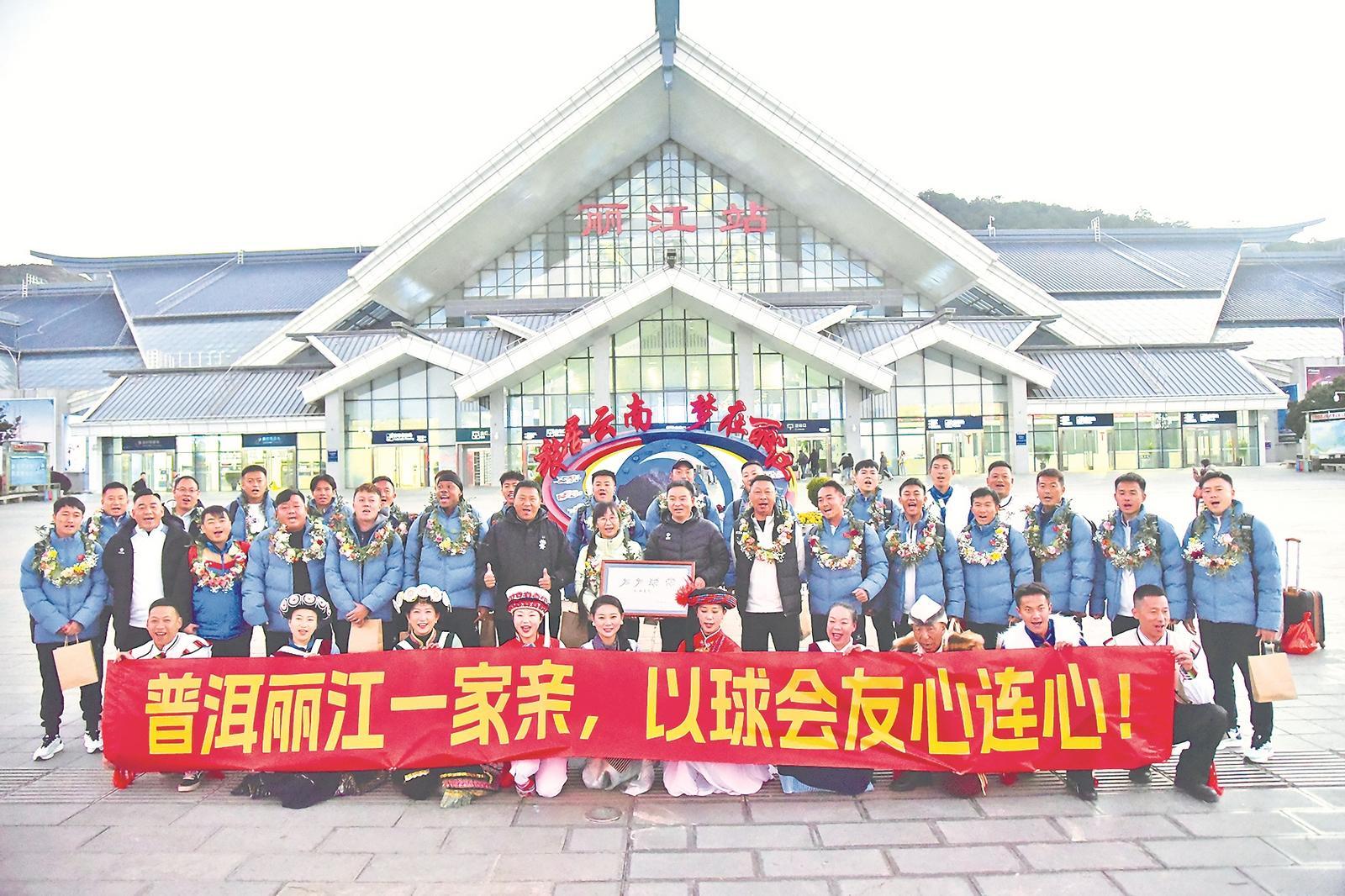 12月29日,滇超联赛普洱队乘动车抵达丽江。丽江相关部门举行了富有民族特色的欢迎仪式,迎接人员载歌载舞,向普洱队球员赠送了东巴字画和特色文创礼品,并邀请球员参与纳西族传统打跳,体验丽江独特的民族风情。