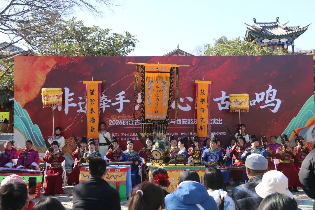 纳西古乐与西安鼓乐各展风韵,古音相和,宛如千年山水相逢,开启了一场穿越时空的对话。