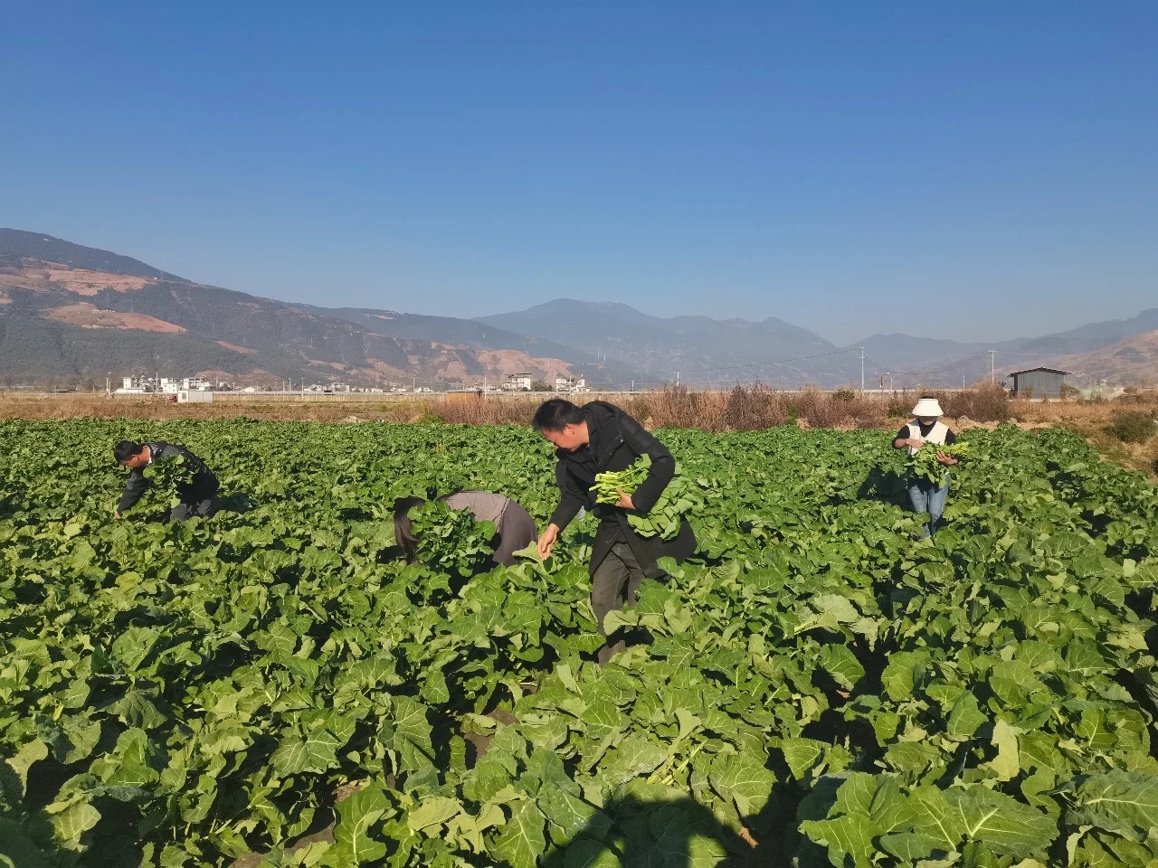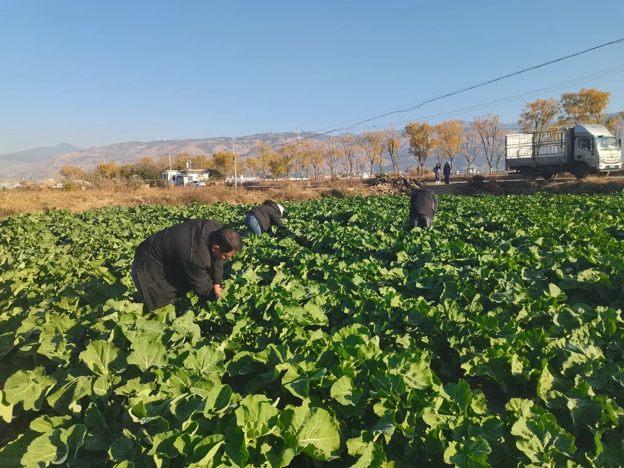 今年,永胜时留农业综合开发有限责任公司与华中农业大学合作,在三川镇4个村连片种植500亩板蓝根青菜。经过近两个月的科学管护,目前蔬菜长势良好,已陆续开始采收。据公司管理人员戴江鹏介绍,基地每日可采收青菜约10吨,经冷链物流销往北京、上海等地,采收期可持续至5月初。