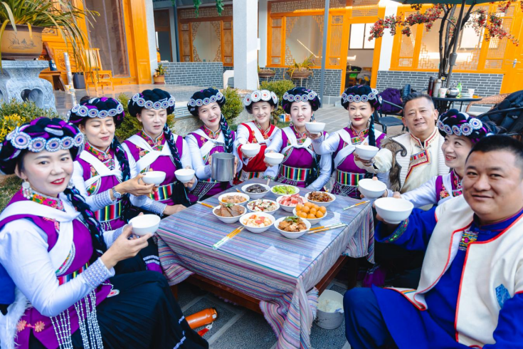 在宁蒗彝族自治县的泸沽湖畔,摩梭人的年味始于祖母屋的第一缕炊烟。除夕之日,松枝在火塘中噼啪作响,家家户户在门窗和农具上贴满彩纸,祈愿万物有灵、五谷丰登。丰盛的年夜饭桌上,猪膘肉、鲜鱼与公鸡肉摆满全席,寓意生活富足;饭后,全家人为长辈洗脚的温情仪式,则传递着代代相传的孝道与祝福。