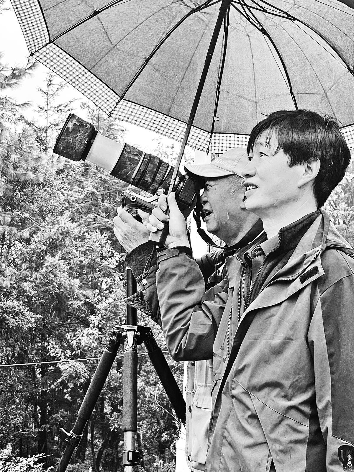 从11月到第二年4月,老李都是林间的常客。他不识多少专业术语,只叫得上常守着的这些鸟名;不像专业讲解员能熟练讲解那些生物数据,他只是默默守护着那些生灵。看血雉在石坡上走,游客举着相机,也拍他蹲在角落的背影——那背影跟山色融在一块儿,像一块长了腿的石头。他不喜欢被拍,但也没法阻止,只能把帽子拉低一点。
