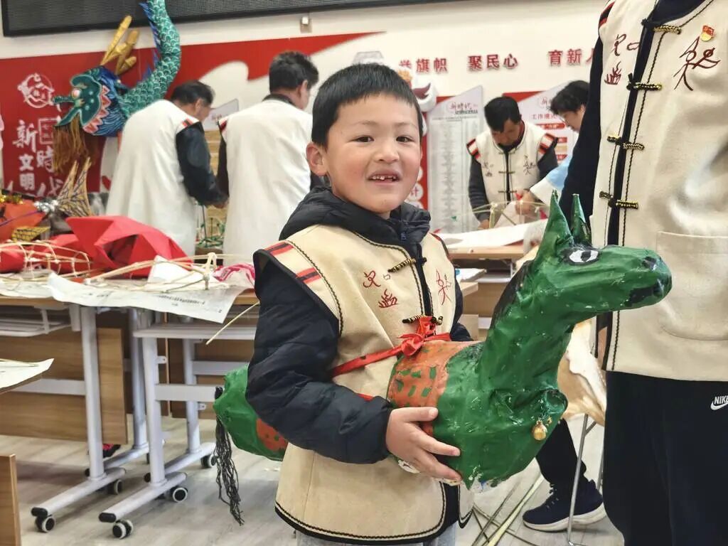 大研街道七一社区党总支书记和振文介绍,今年社区准备的花灯以萌宠、十二生肖、红星、东巴传统造型为主,其中两匹小马驹造型的花灯格外亮眼。和振文说:“2026年恰逢马年,小马驹花灯寓意龙马闹春,既寄托着对新年的美好期盼,也彰显着小朋友的朝气蓬勃与大家奋进向上、骏马奔腾的精神风貌。”