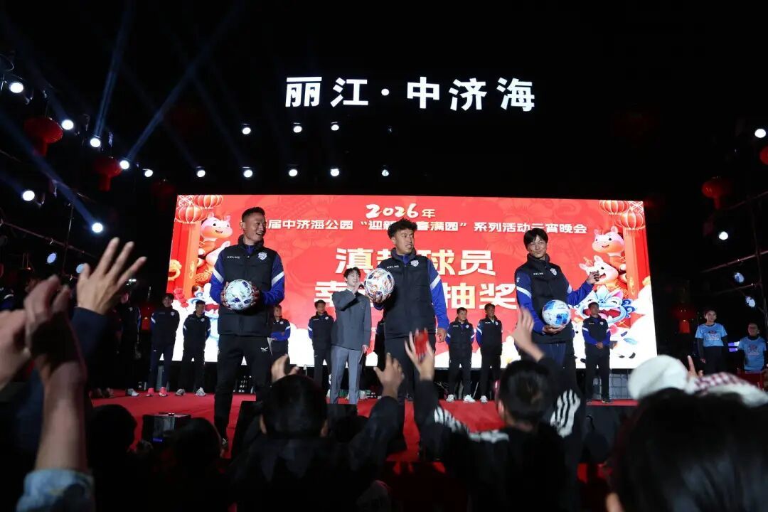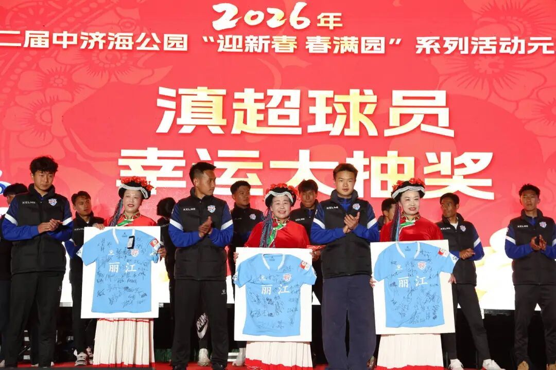 夜幕降临,活动迎来高潮。天女散花惊艳亮相,元宵晚会节目精彩纷呈。逐梦滇超·雪山小将足球赛颁奖仪式、滇超球员见面会同步举行,文体融合氛围浓厚。在滇超球员见面会现场抽奖环节,签名球衣、签名足球,以及3月7日丽江主场对阵西双版纳赛事门票好礼不断,瞬间掀起球迷狂欢热潮。