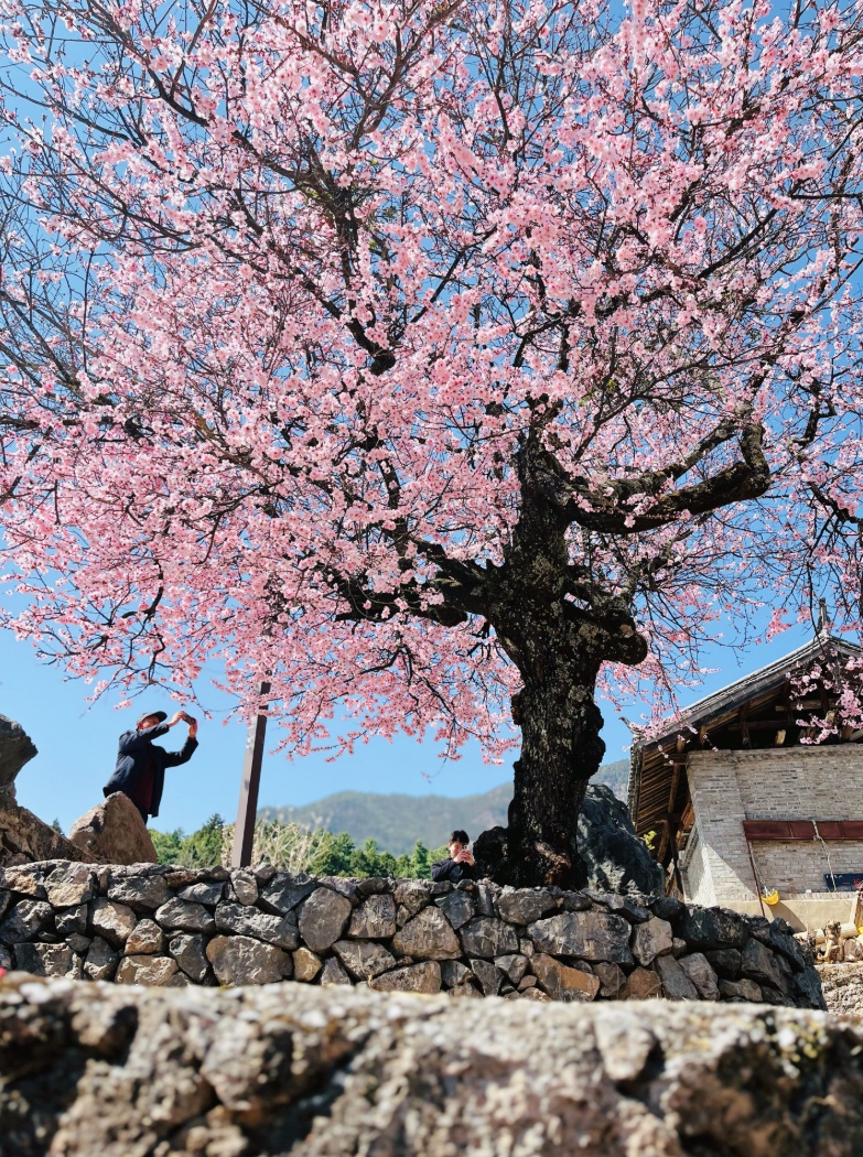 白沙镇玉龙村古桃春色浓,一树繁花绚烂绽放。(丽江融媒记者 和慧芳 摄)