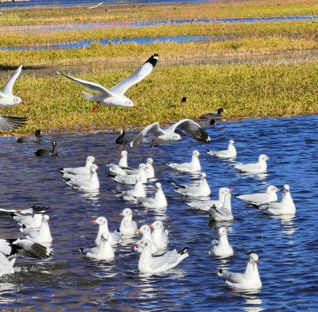 岸边的摄影爱好者架起相机,屏息凝神,只为捕捉水鸟展翅的瞬间;有人安静坐在石阶上,不喧哗、不追逐,只是远远望着湖面上的精灵,目光温柔而敬畏。