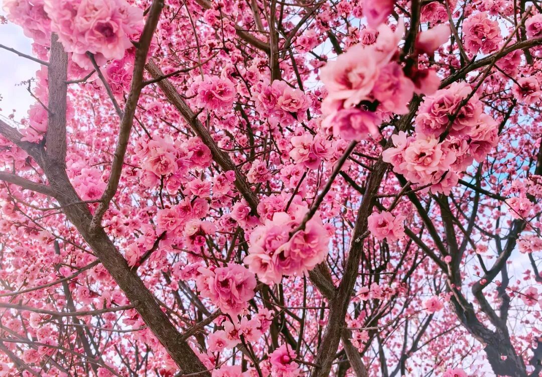 粉红的梅花开满枝头。(丽江融媒记者 赵永莲 摄 )