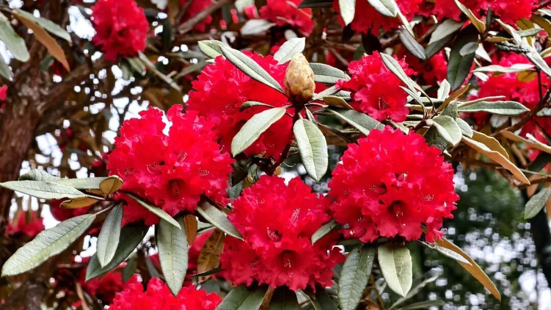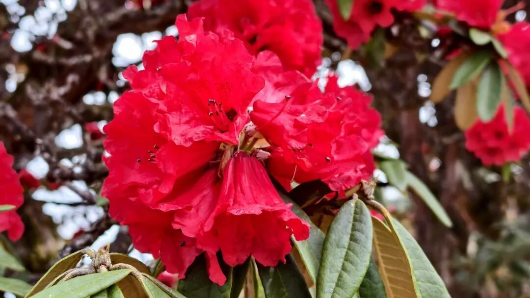 杜鹃依着山形肆意生长,一簇簇、一丛丛,如烈焰燃于青岗,似云霞落于峰峦,花瓣轻颤间,藏着高山的清冽,也裹着春日的温柔。走近看时,每一朵都很精致,花瓣薄得像蝉翼,边缘微微地卷着,透着光,能看见细细的脉络。风过林梢,花枝轻摇,整座山都在轻轻呼吸,花香混着草木清气漫溢,深吸一口,是独属于高山春日的纯净与治愈。登顶远眺,群山层叠如黛,云雾绕于峰尖,杜鹃独秀一方,尽展“一览众山小”的磅礴气韵,目光所及,皆是繁花似锦。