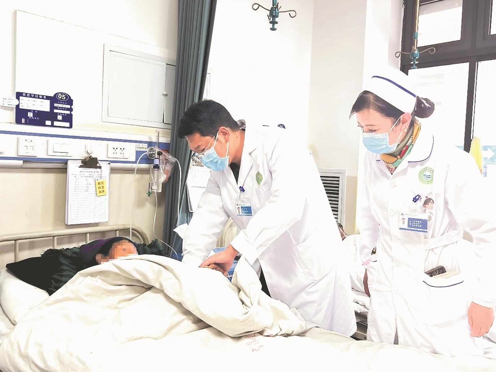 宁蒗县人民医院的医务人员为患者检查身体。 (通讯员 罗华 摄)