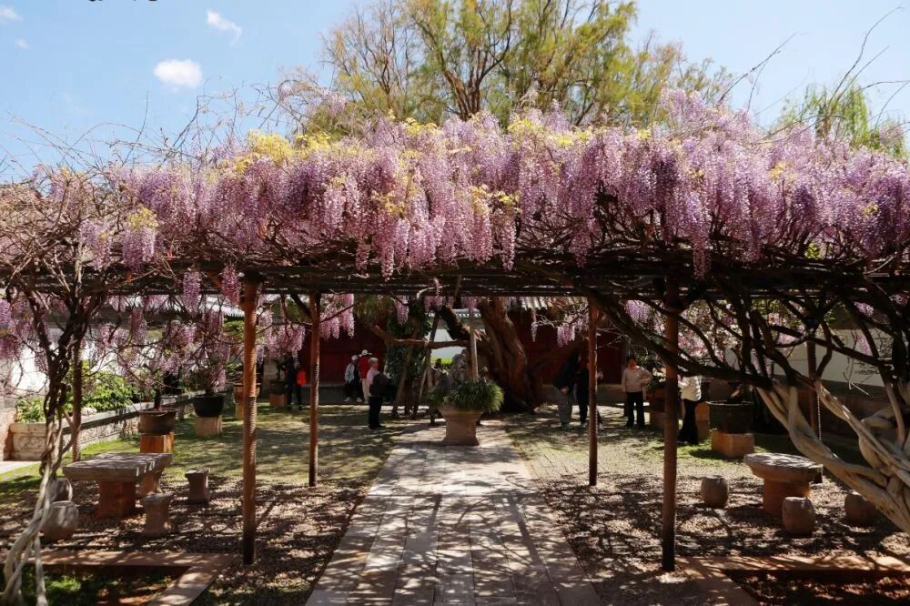 春风送暖,丽江各处的一抹抹梦幻紫悄然缀满枝头,一串串紫藤花次第绽放,如紫雾漫卷、似垂瀑倾泻,缠绕着古院民宅、校园小径,将丽江的城乡晕染出别样浪漫,为“花漾丽江”的春日长卷,添上浓墨重彩的浪漫。