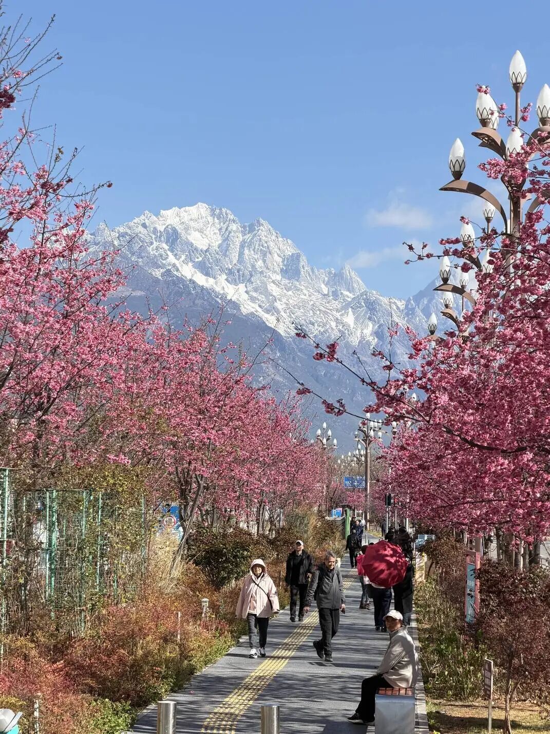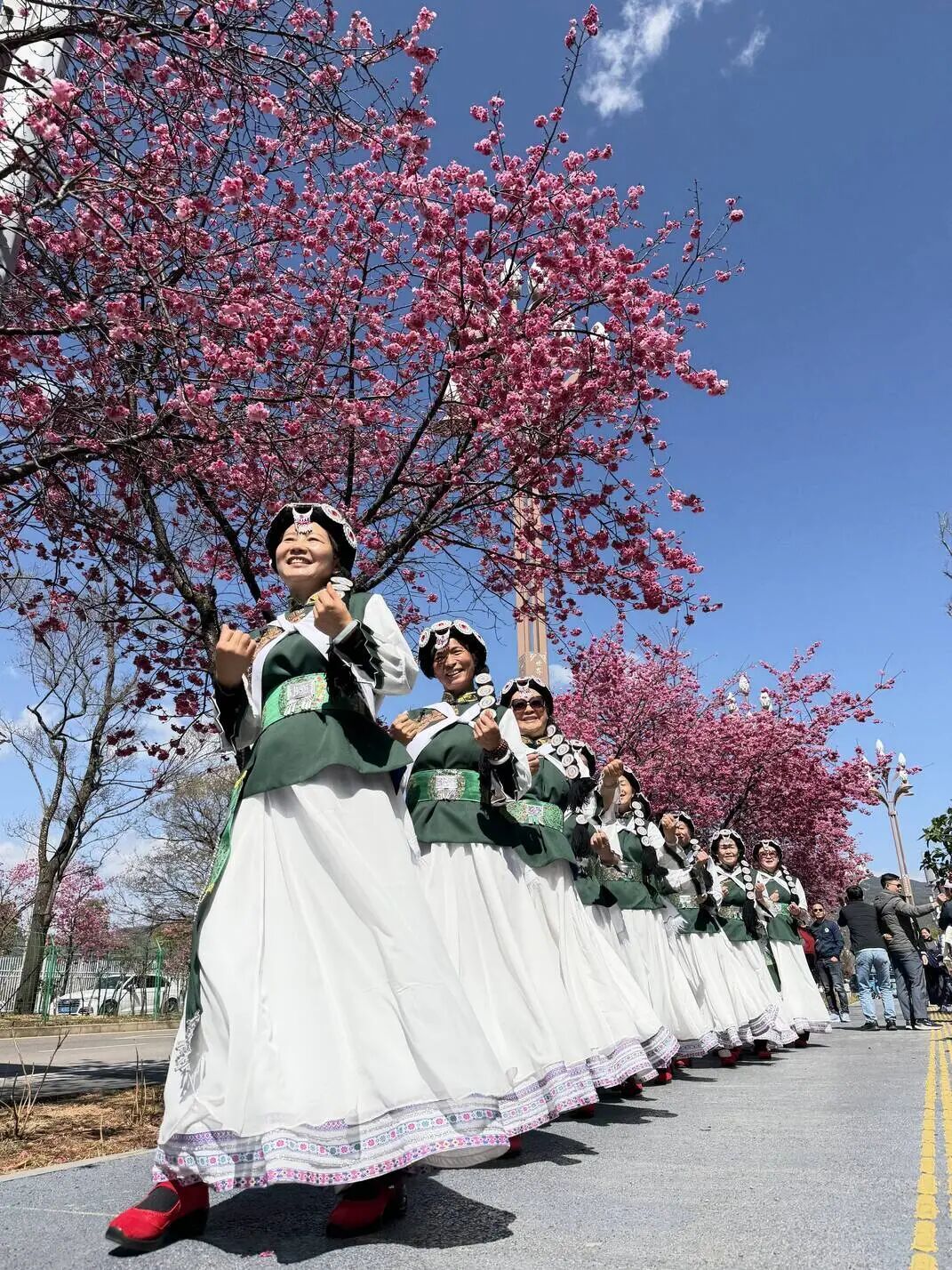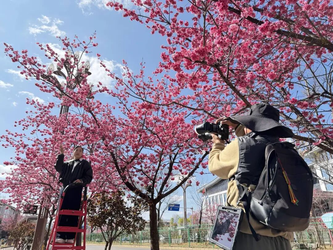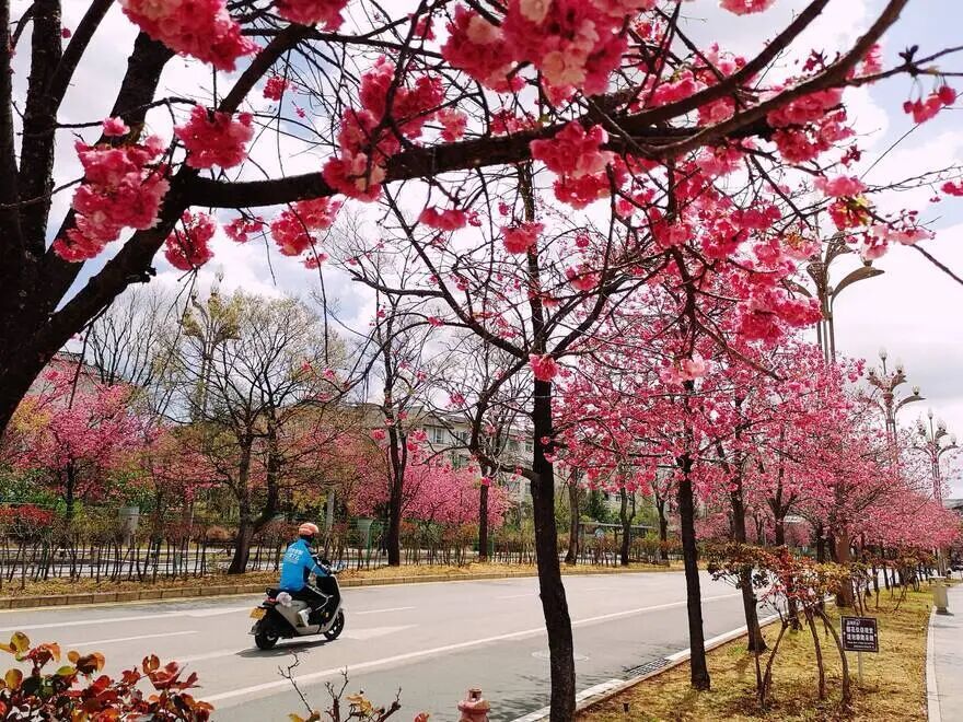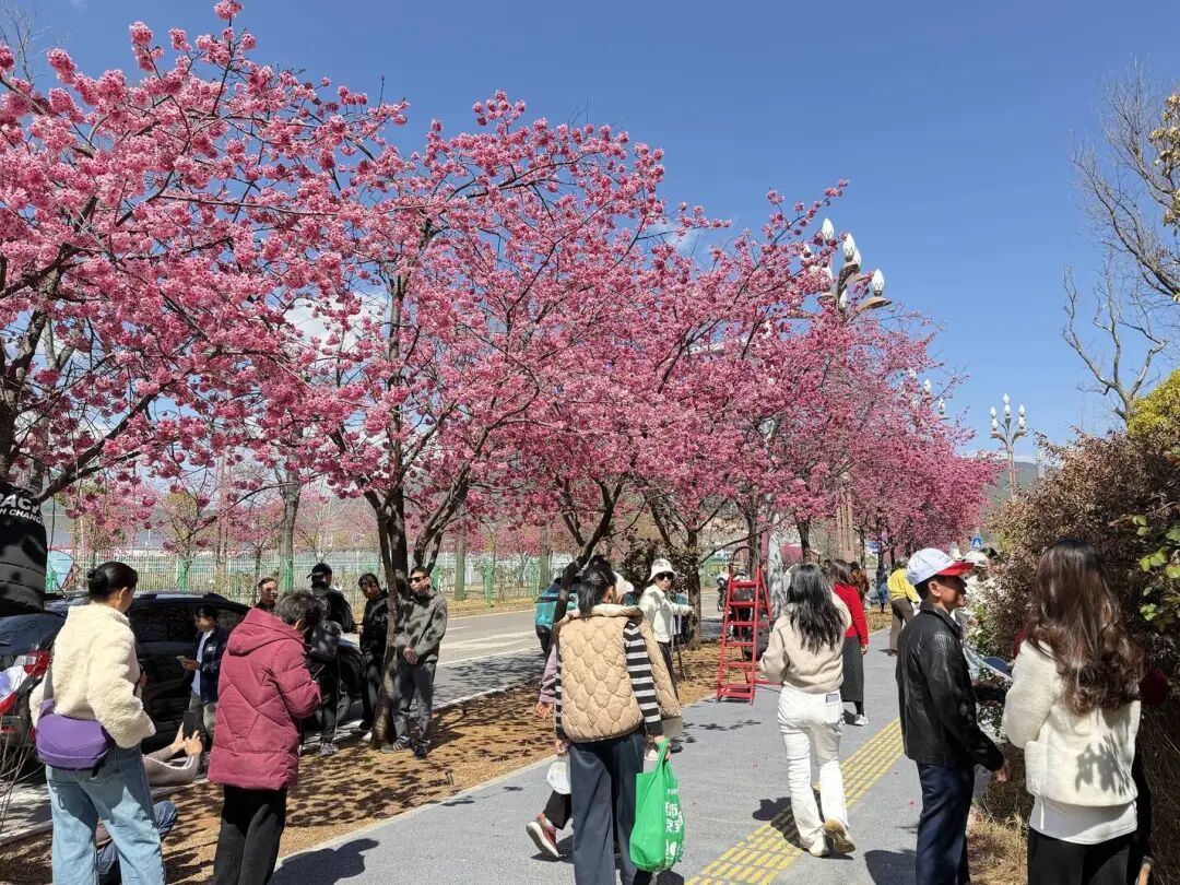 雪山路两侧樱花如约盛放