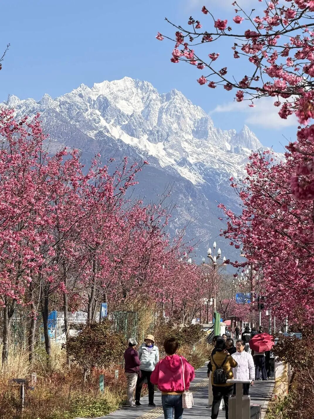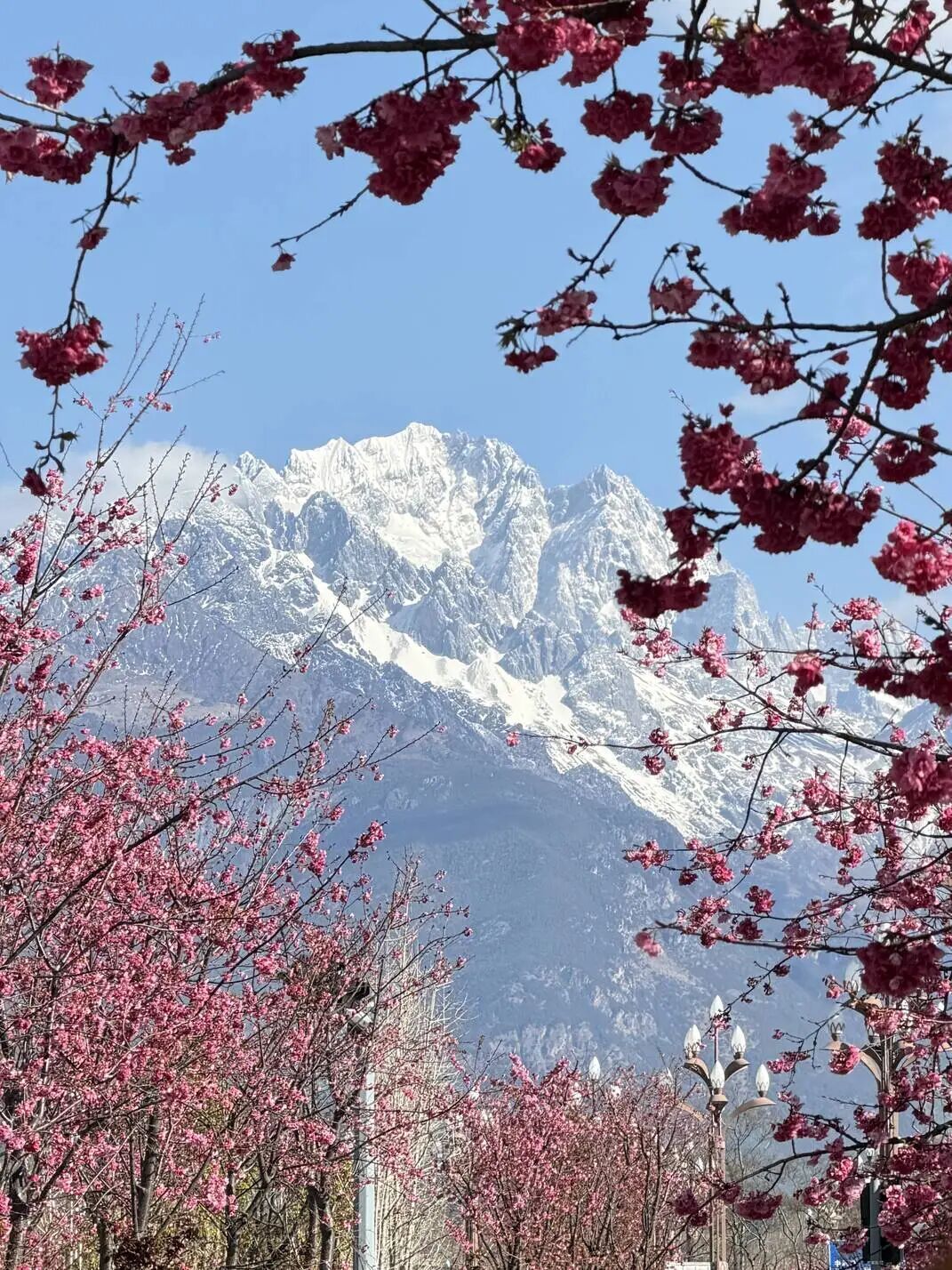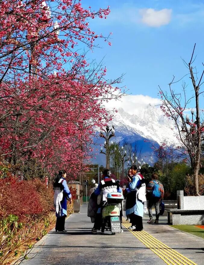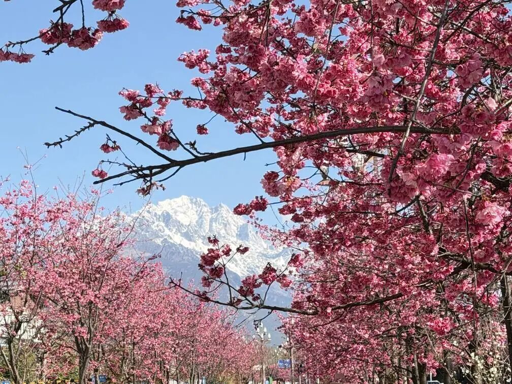 樱落雪山间,丽江春正好