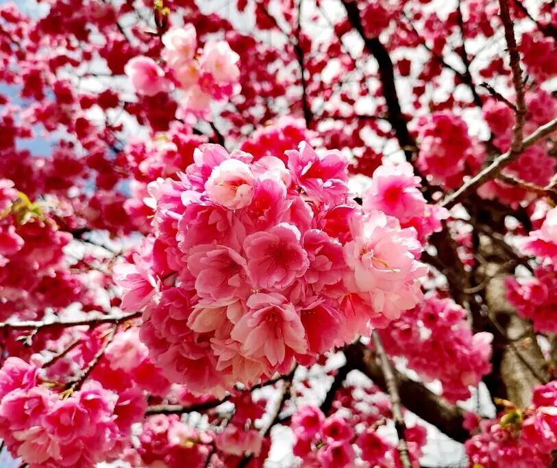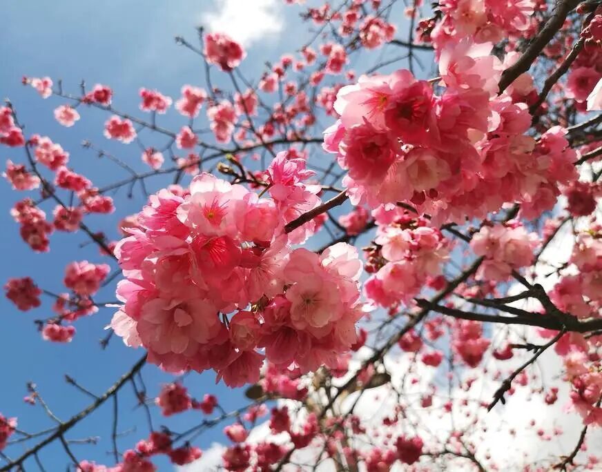 粉白花瓣簇拥枝头