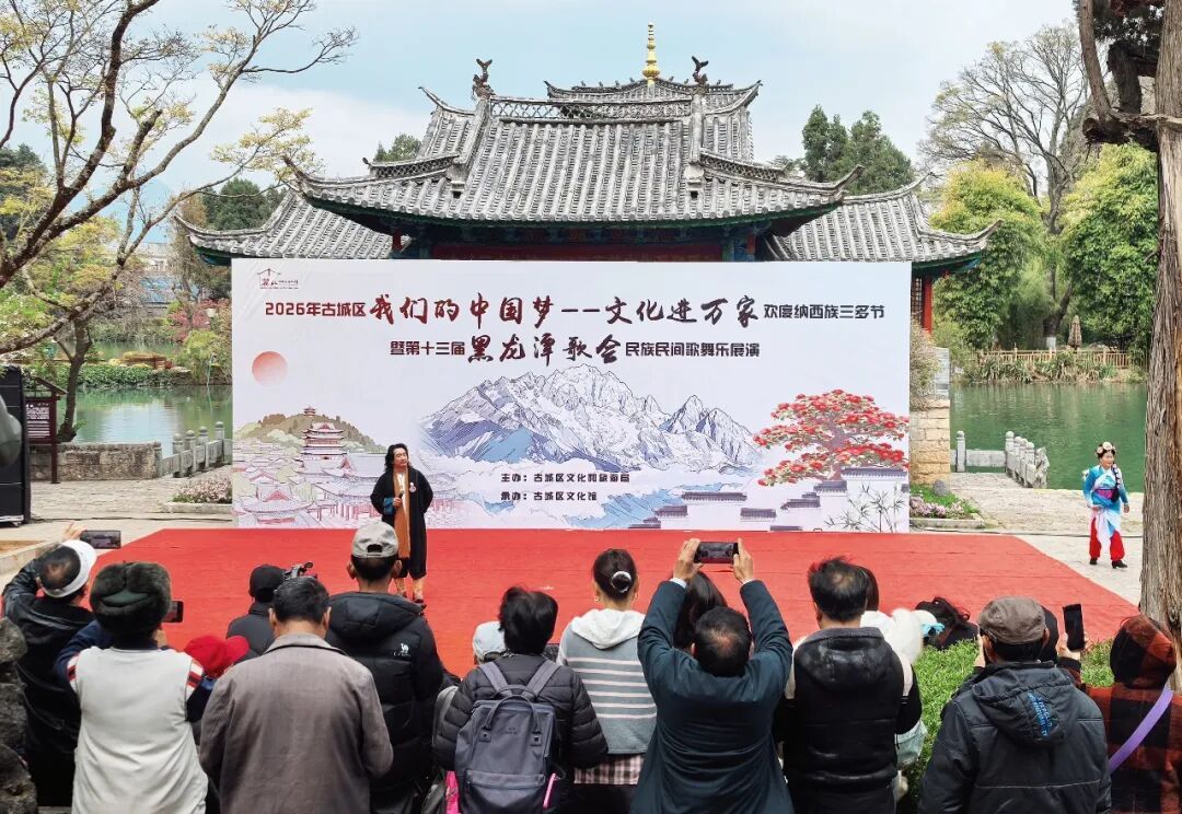 春日的丽江市黑龙潭公园,碧水映雪山,古乐伴欢歌。3月25日,作为纳西族三多节的重头戏,第十三届“黑龙潭歌会”民族歌舞乐展演在公园露天舞台精彩开唱。这场以“我们的中国梦·文化进万家”为主题的盛会,没有华丽的舞台特效,却凭借“原生态+新编创”的独特魅力,让游客和市民在山水园林间沉浸式感受了一把滇西北民族文化的鲜活脉动。