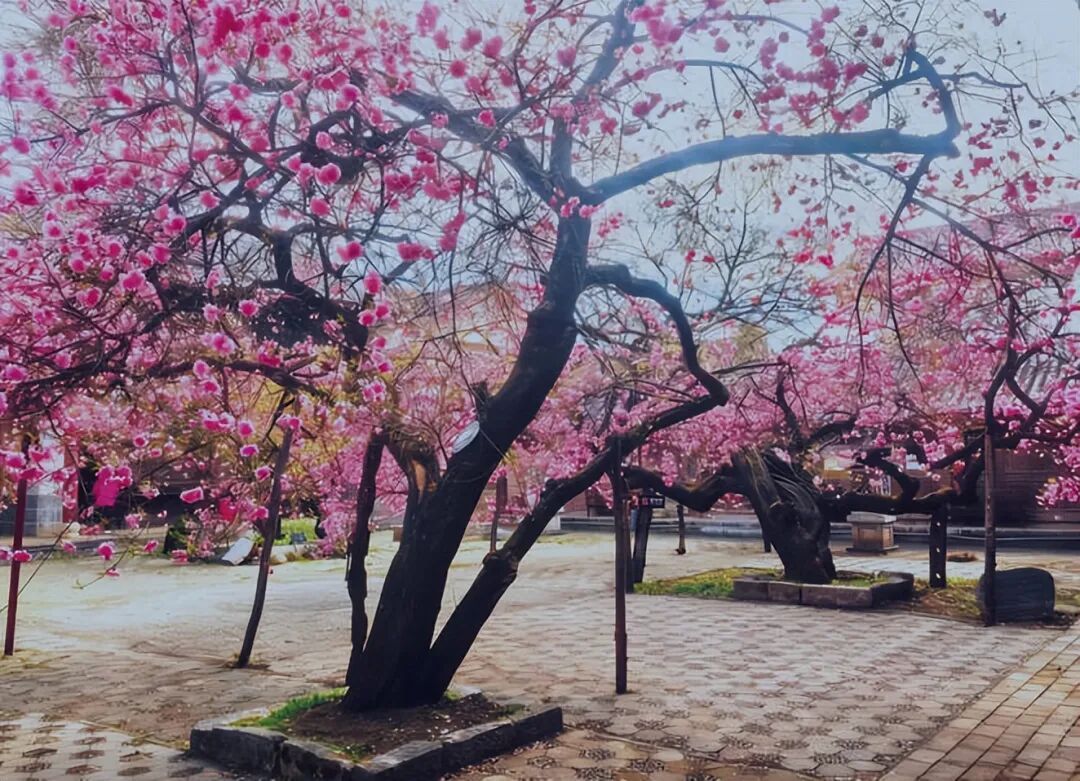 原标题:春满束河 百年碧桃开,一院春光藏千年古道情