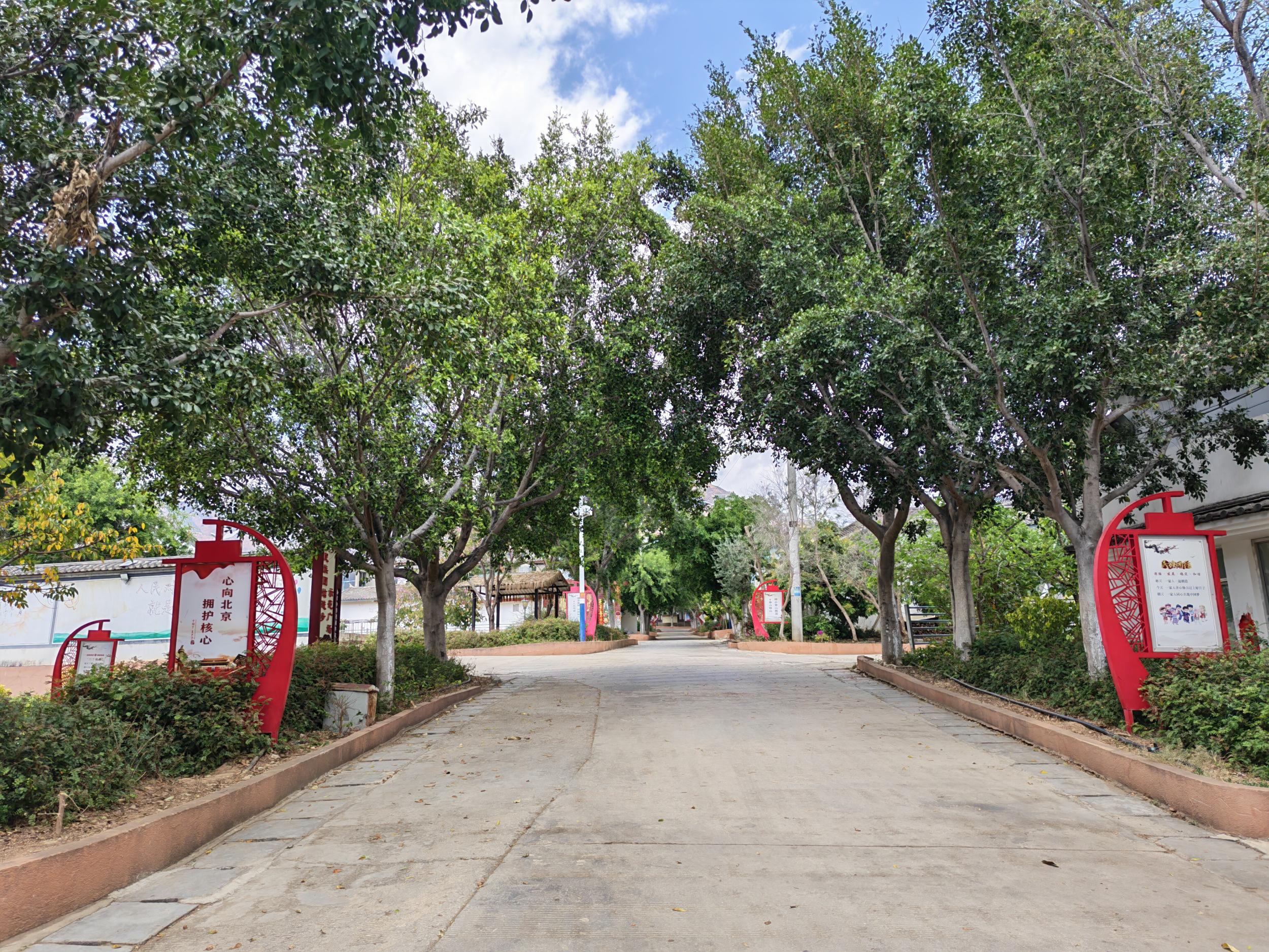春回金沙江,一江碧水奔涌向前,两岸青山绿意渐浓。走进永胜县涛源镇和谐村委会龙锦村,村口石牌坊巍然矗立,白墙黛瓦的小楼依山错落,水泥路笔直通到每户门前,太阳能路灯沿路排开。房前屋后,三角梅开得正盛,把村子装点得生机盎然。