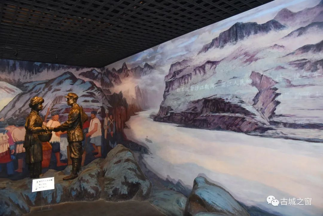 红色丽江展厅通过虚实结合再现了当时红军长征过丽江渡金沙江的场景。1936年4月,在丽江人民的帮助下,红二、六军团18000多红军战士顺利渡过了金沙江,并在丽江播下了革命的火种,在抗日战争时期和解放战争时期各有三千多名丽江儿女参战,为云南全境解放和新中国的成立作出了巨大的贡献。