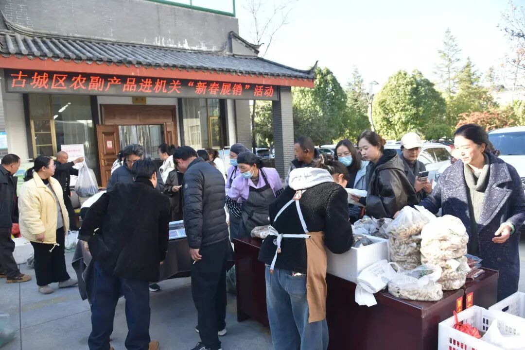 土鸡、蜂蜜、沃柑、手工饵块整齐陈列,干部职工驻足选购、扫码下单……2月11日,丽江市古城区政府大院机关食堂前热闹非凡,由区机关事务管理局组织的农副产品进机关“新春展销”活动正式启动。短短几小时内,土鸡、蓝莓等多款产品售罄,生动诠释了“政府搭台、农企联动、职工受益”的消费帮扶新模式。