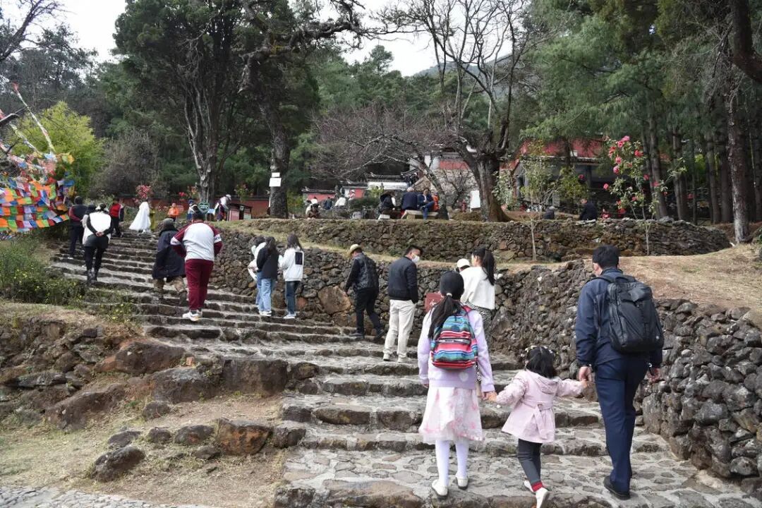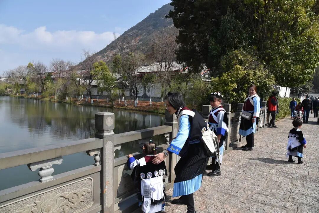 纳西人将“踏青”叫作“远足”,人们的足迹遍布丽江的山水之间——黑龙潭边,碧水倒映雪山,杨柳依依,过去是野炊的绝佳之地;云杉坪上,高山草甸初露新绿,原始云杉挺拔苍劲,远处的雪山与近处的新芽相映,人们徒步木栈道,观雪山雄姿,听松涛阵阵;文峰寺的山间小径,绿树掩映,清泉潺潺,徒步登高,既能舒展筋骨,又能俯瞰丽江坝子的春日盛景,在自然的壮阔中涤荡心灵。