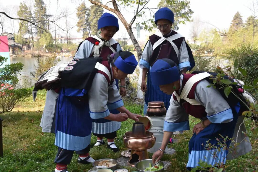 野炊的烟火气,是踏青最动人的底色。过去,纳西人家早早备好食材,在林间、溪边、草坪上支起简易炊具,煮一锅热气腾腾的纳西火锅,土鸡、豆腐、韭菜根等各种时蔬在火锅中慢炖,汤汁浓郁,鲜香四溢;拌一碗丽江醋凉面,酸爽开胃,解腻消食;切一盘鸡豆凉粉,淋上秘制酱料,滑嫩爽口;再拿出事先备好的外酥里软的丽江粑粑,咸香甘甜,满口都是自然的本味。一家人、一群人围坐在一起,吃着美食,聊着家常,歌声与笑声在山野间回荡,人与自然融为一体,这便是纳西人最本真的幸福。现在,这样的场景中,除了没有火锅,其他都还有留存。
